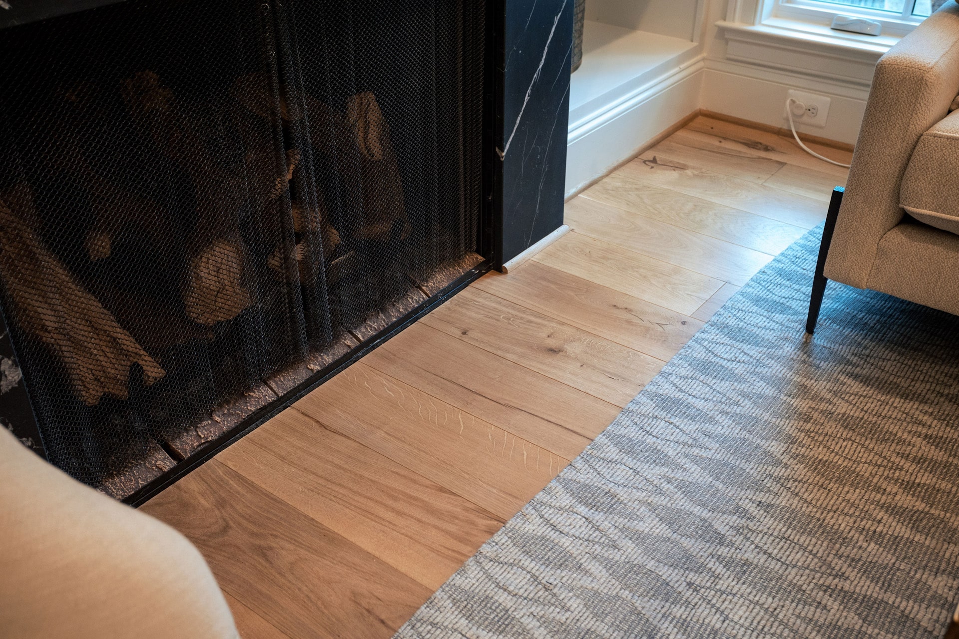 Bright and elegant, this custom home by Brush Arbor Homes near downtown Washington DC displays an astounding statement piece with our 5/8″ x 7″ engineered European Oak Invisible flooring.
