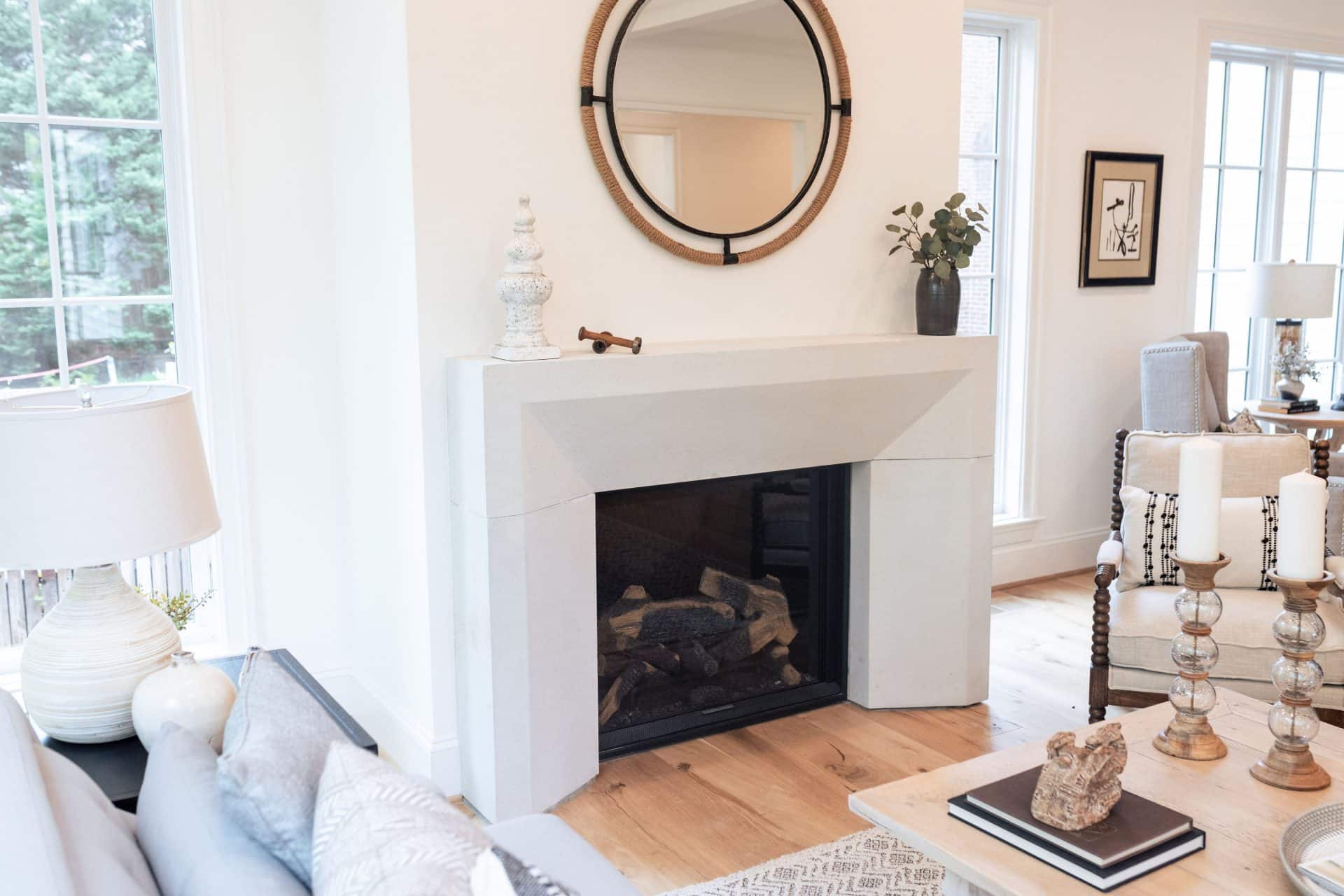 This mix of traditional and modern highlights our engineered European Oak Invisible flooring and “makes a statement but is not overbearing as to distract from the space” according to Logan Welsh, Director of Operations at Brush Arbor Homes. “The quality can be felt and seen, which compliments the space and matches the level of a Brush Arbor home,” Logan also said.