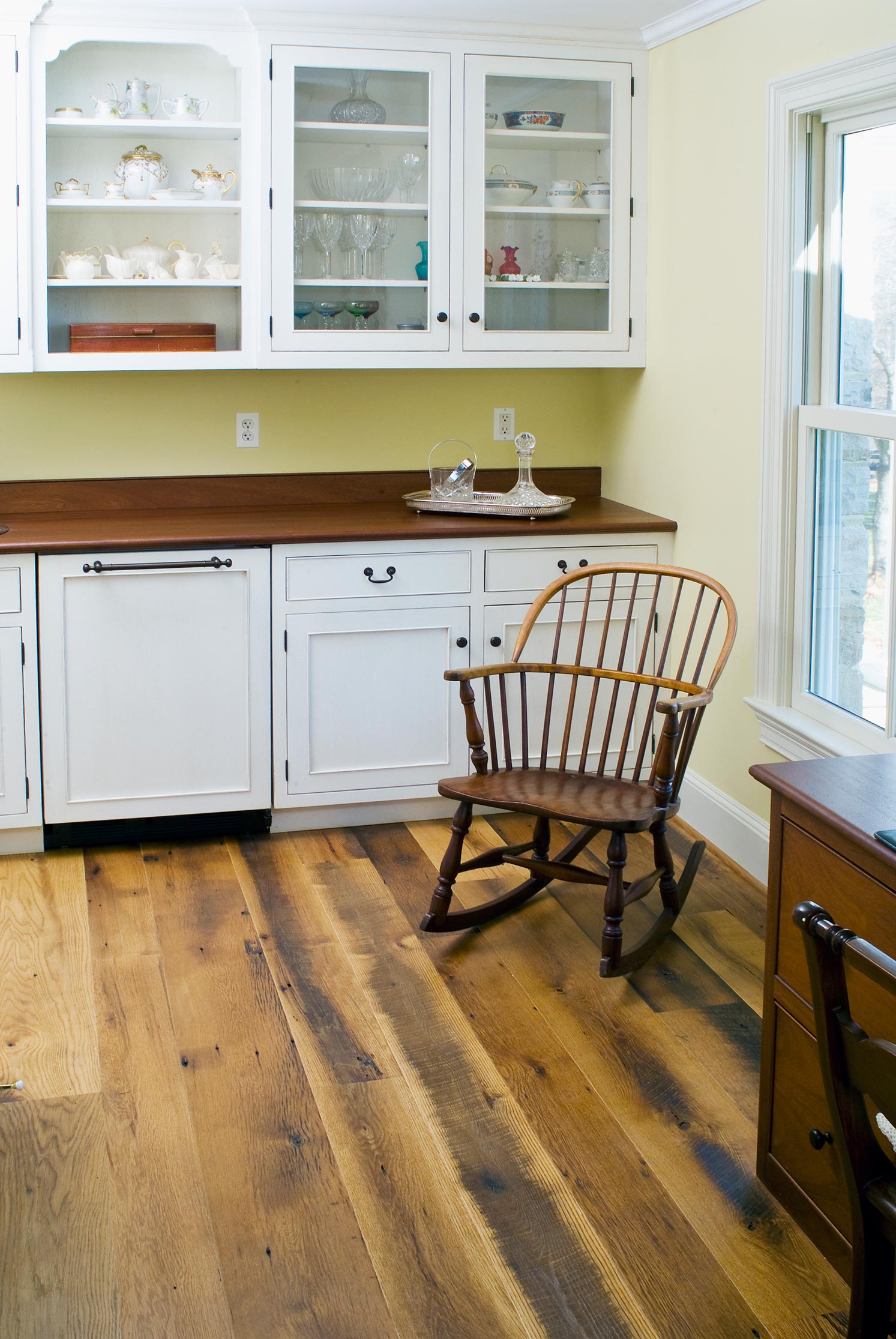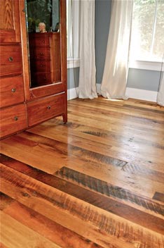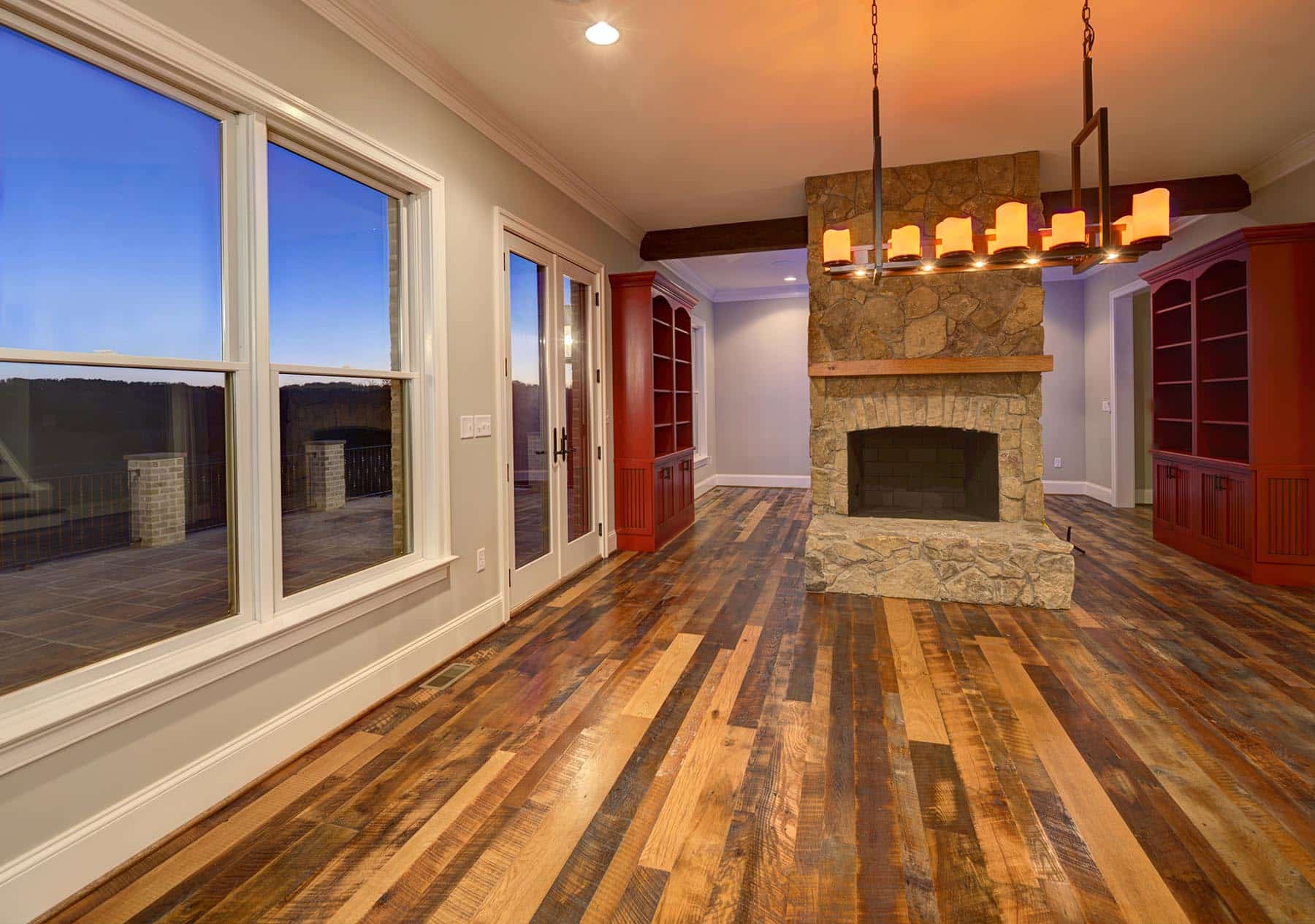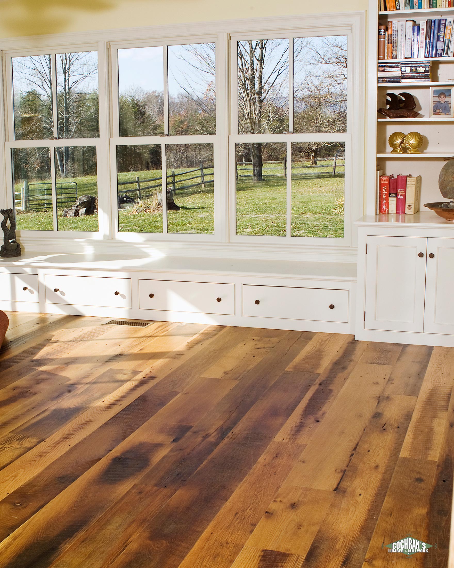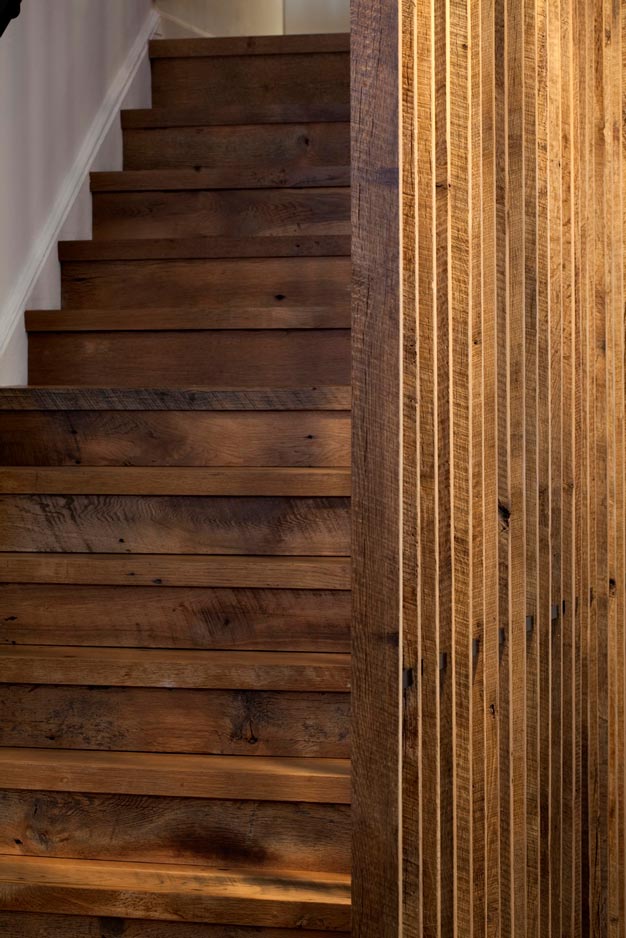Made from the exterior faces of beams, decking, and siding boards our Antique Oak Distressed wood flooring gives any space a more rustic cozy feel. This grade displays worn character from the dark weathered patina, deep saw kerfs, and rough abuse the lumber received from years of heavy use.