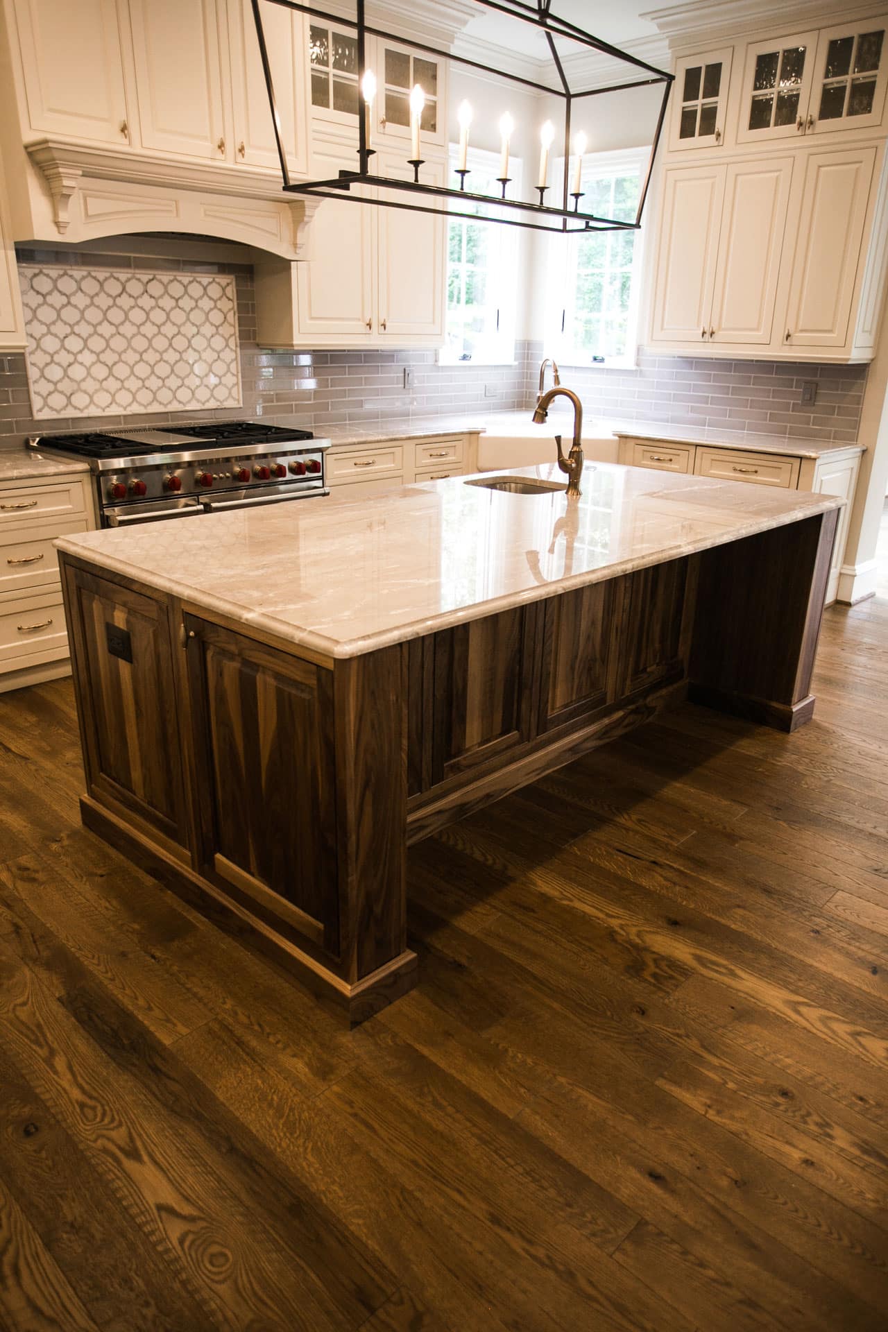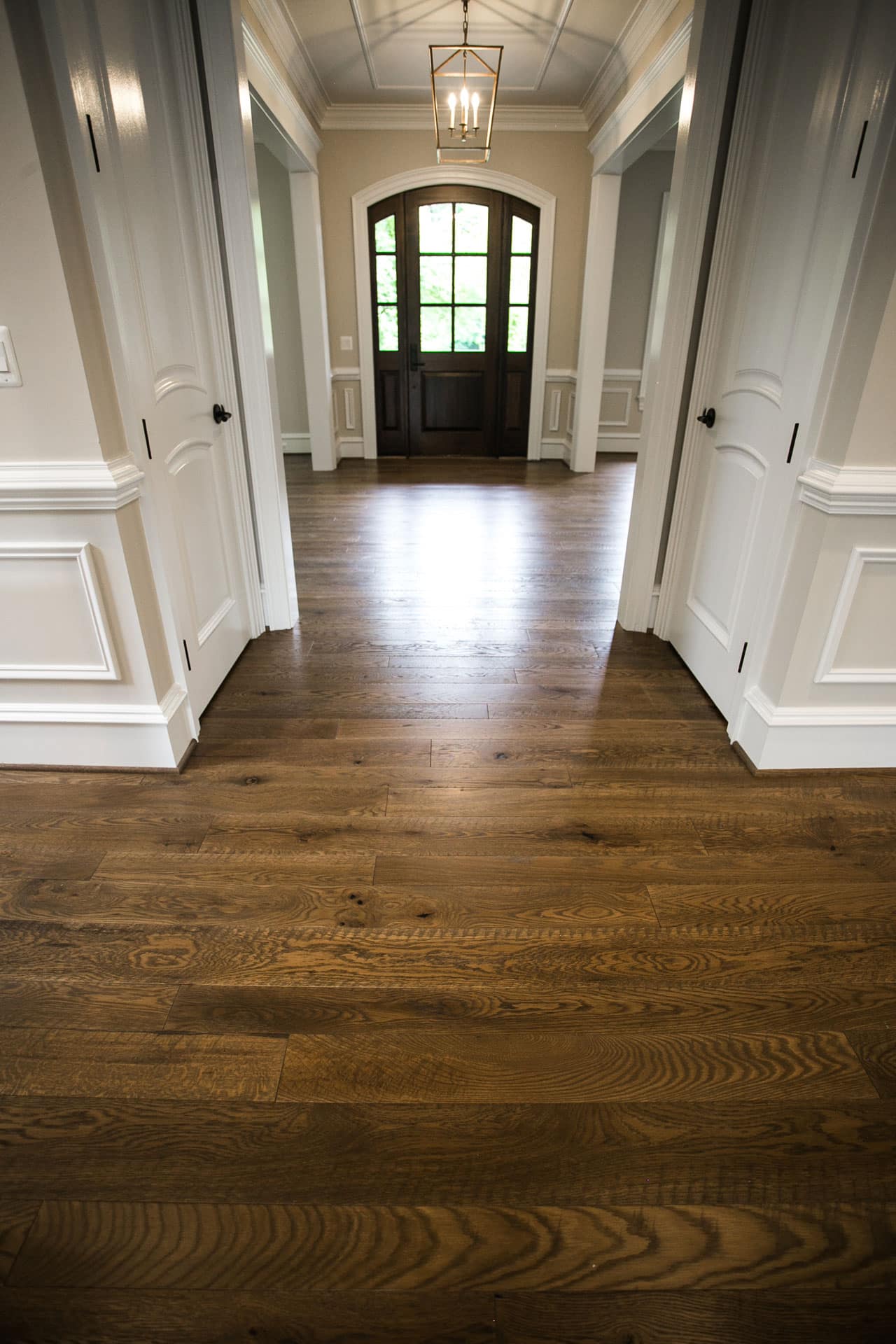 Like the beautiful Chestnut tree that once canopied countrysides from Maine to Mississippi, our English Chestnut stain is both unassuming yet regal in color and depth. Shown on our Live Sawn White Oak with added Circle Saw Kerf, English Chestnut is a great flooring choice that gives a space personality without overpowering the room’s conversation.