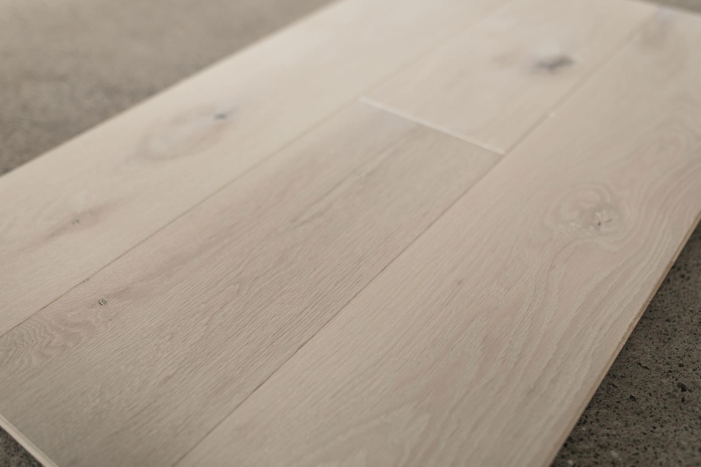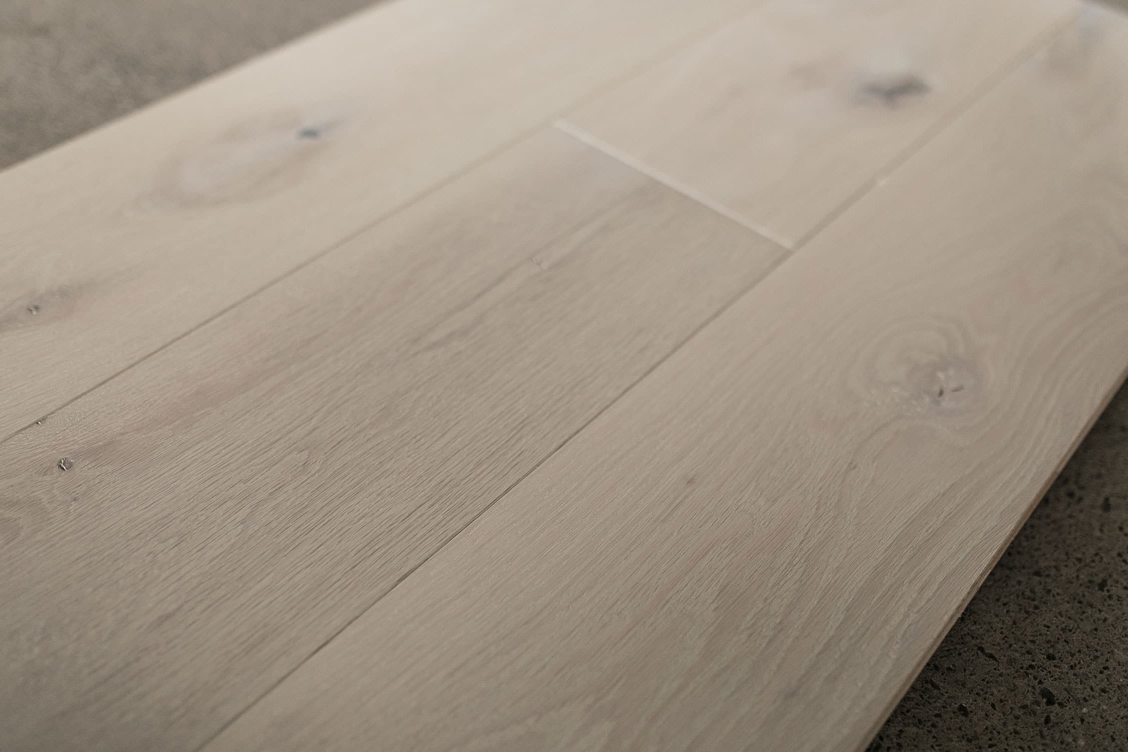 Crisp, clean Linen gives off the aura of tranquility and simplicity. Shown on our Live Sawn White Oak, our custom Linen stain is popular with our customers who are designing a modern or minimalistic Scandinavian look.