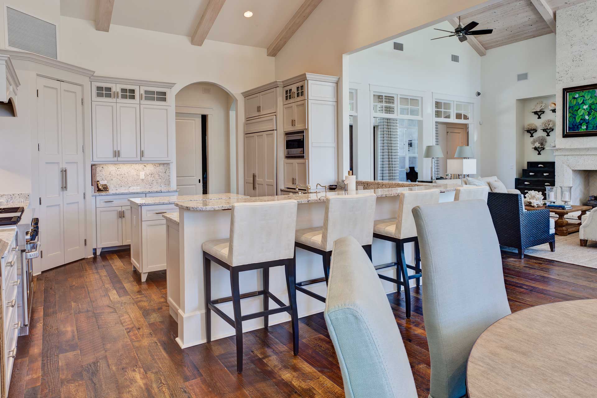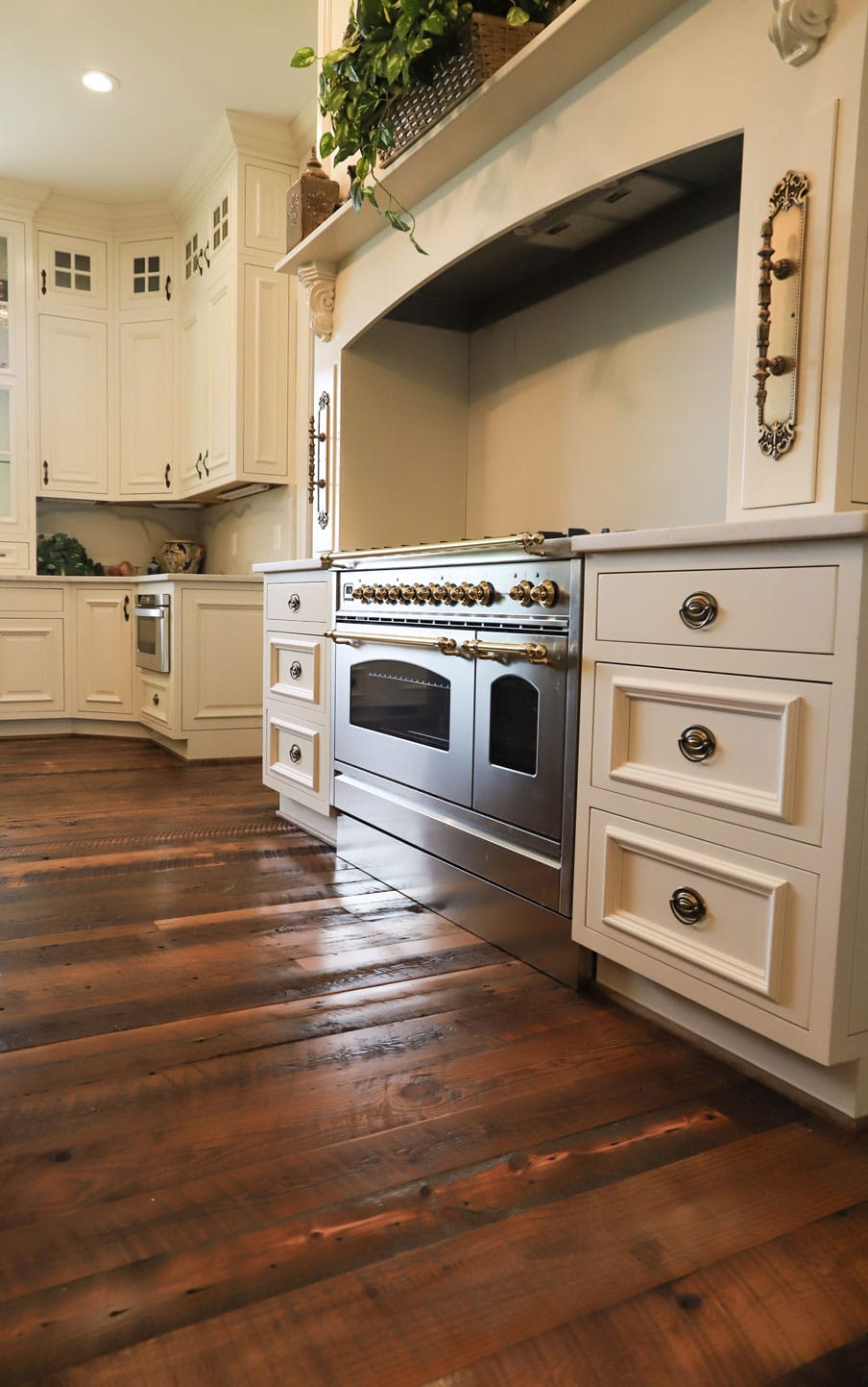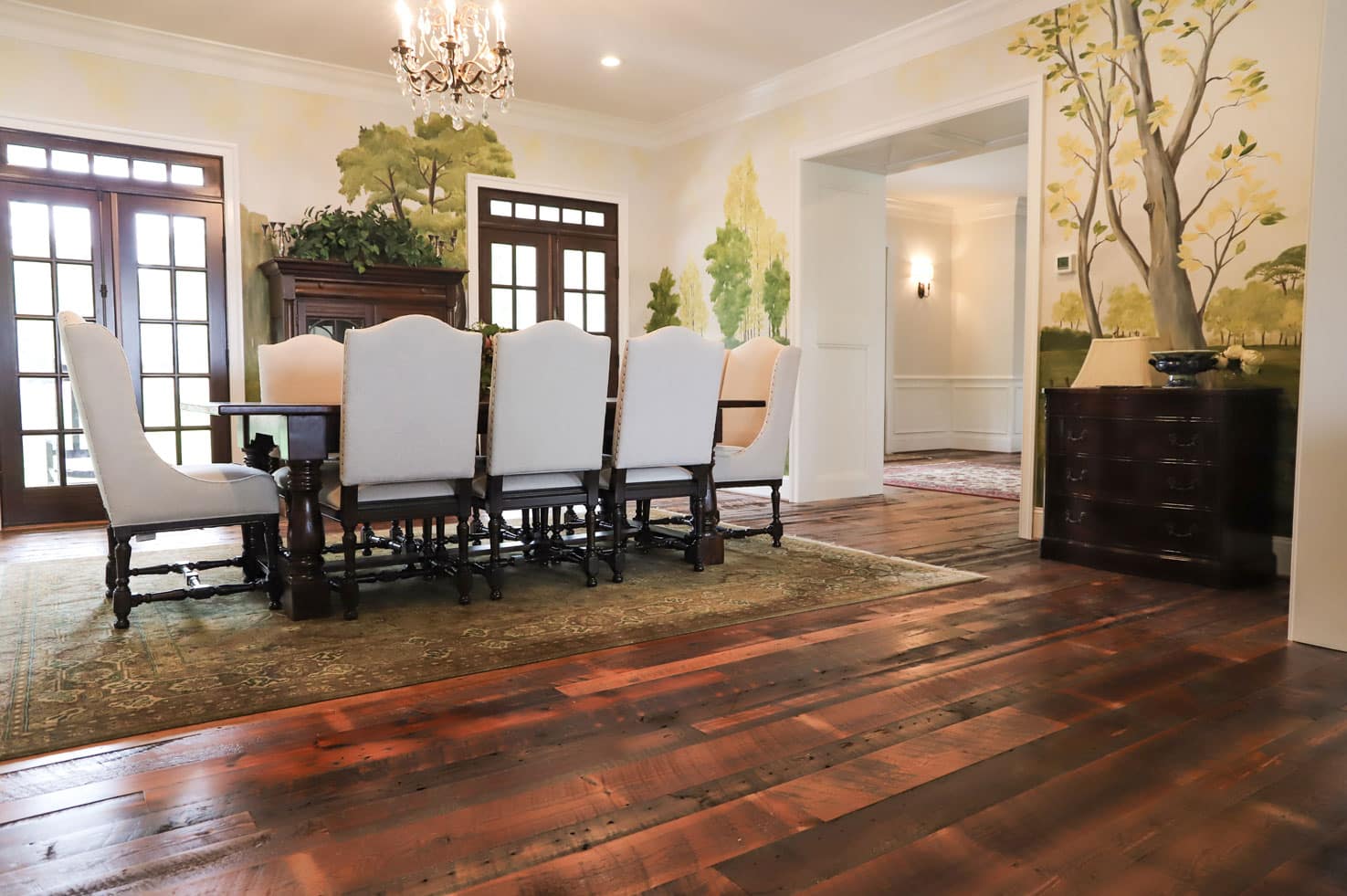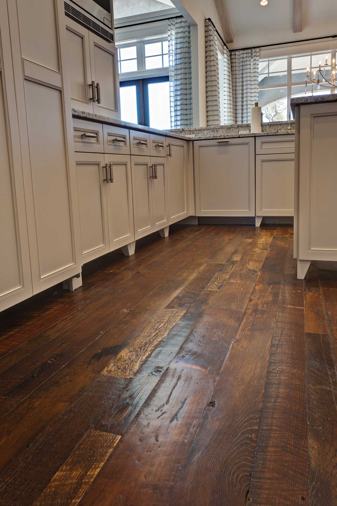 Expect to see colorful heartwood, large knots, nail holes, dents and dings, and of course the rich tobacco patina in our Tobaccowood flooring. Our distressed grade features the weathered patina and rough saw kerf that makes this floor an exceptional choice for any flooring project.