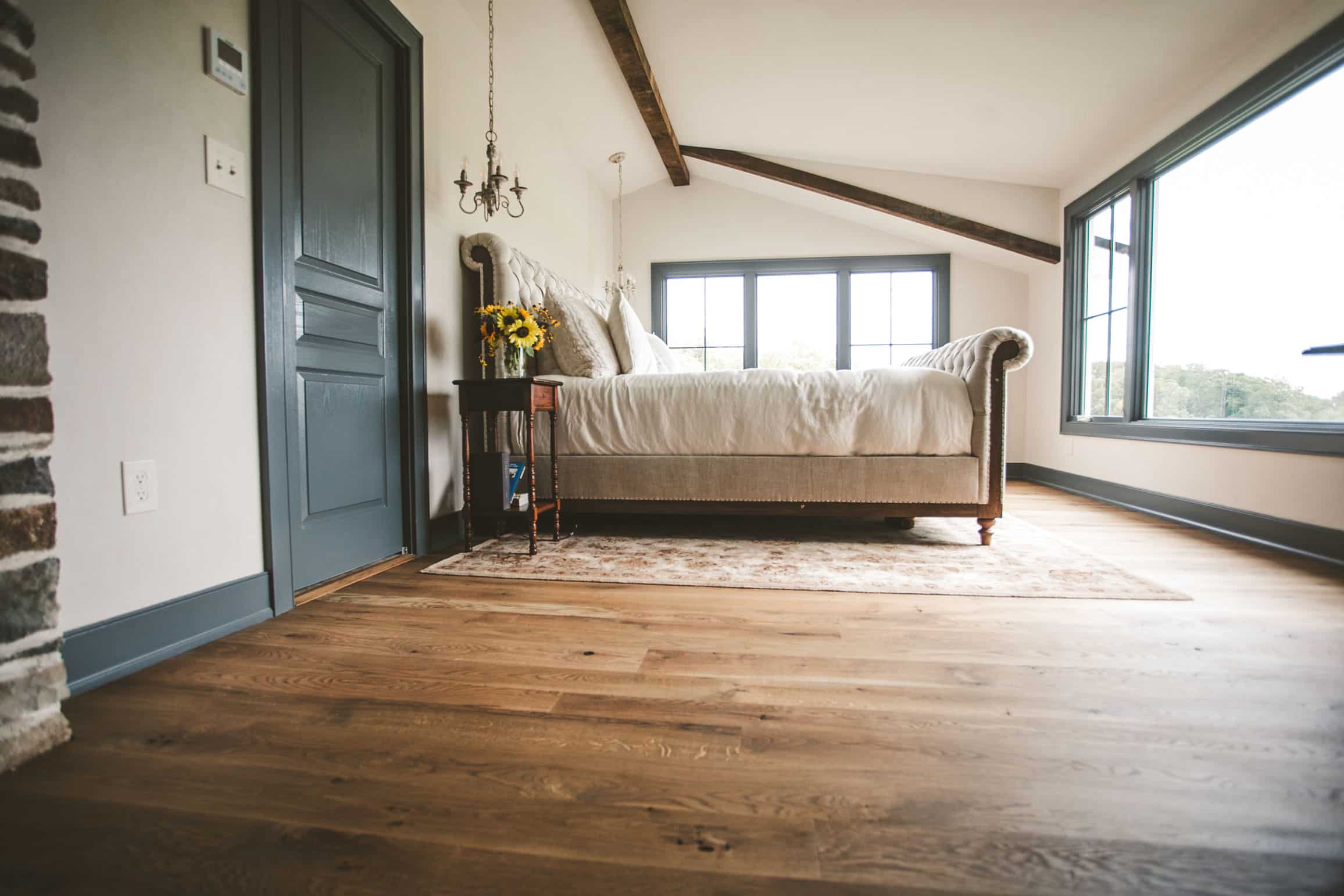 Named after the picturesque Wind River Mountain Range in Wyoming, we drew our inspiration for our custom Wind River stain after the snow-peaked mountain caps that blend in beautifully with the gray stone. The views, like our Wind River flooring, are stunning – filled with character and grace. Shown on our Live Sawn White Oak, this flooring is perfect for all types of decor and style!