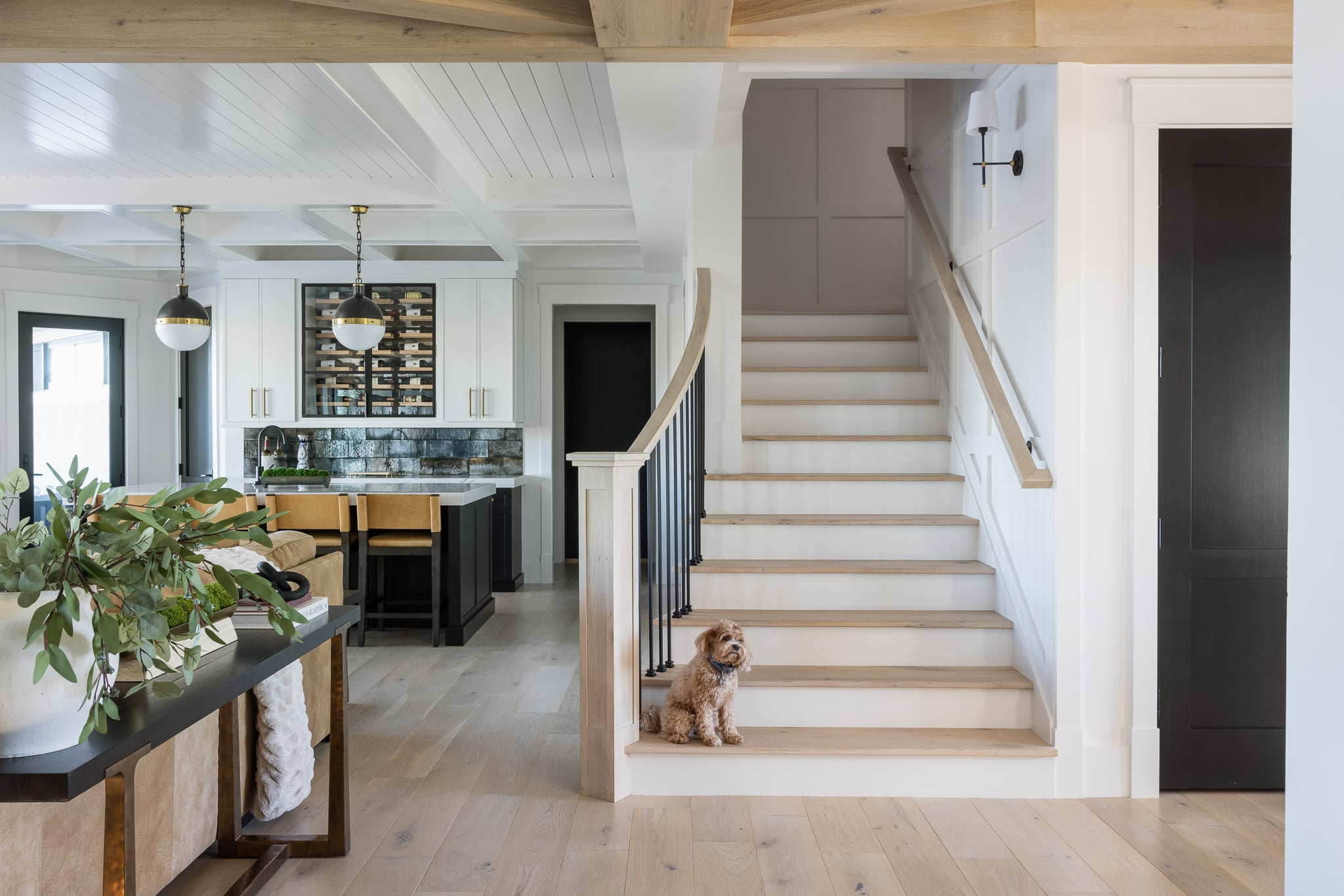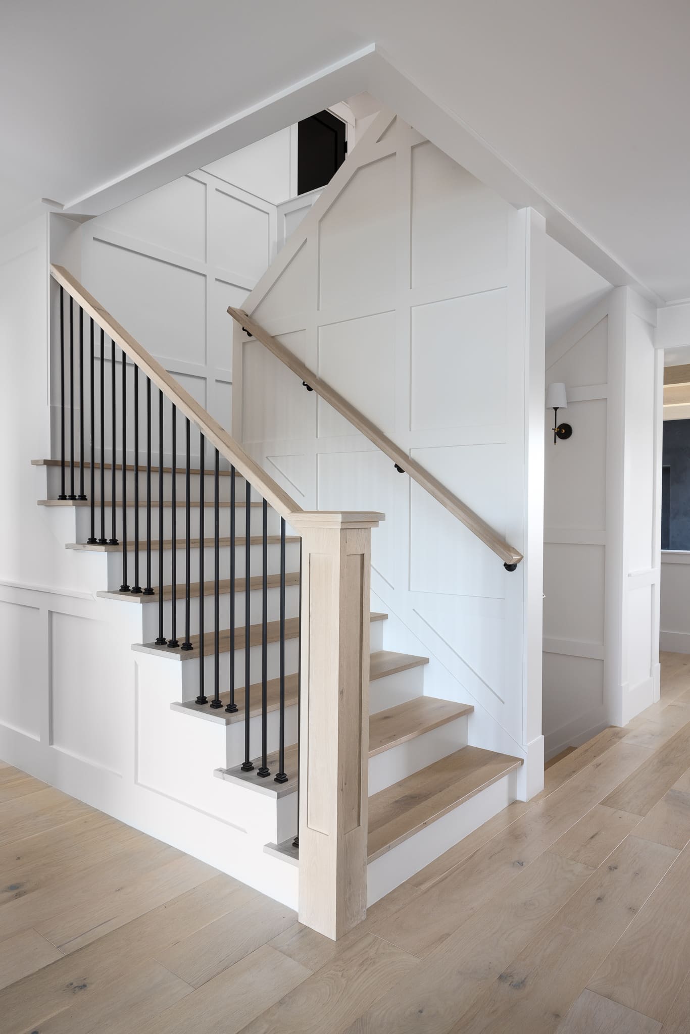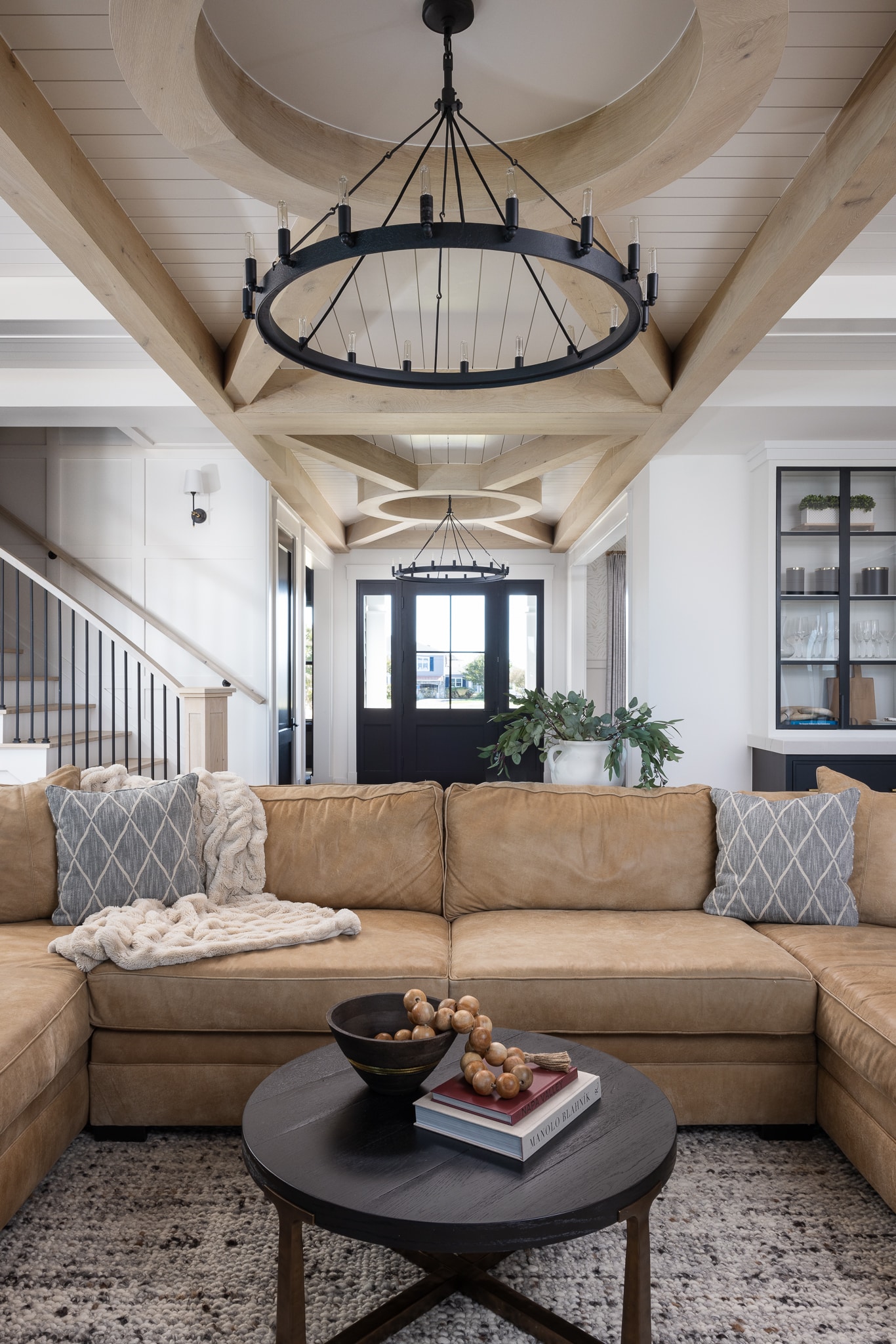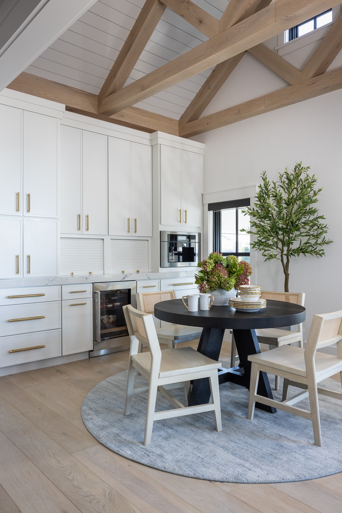 Coastal, comfortable, creative — and purely breathtaking. This stunning design by the talented Gina Drago, built by the water by Consolidated Commercial Services, is a true standout. The interior is grounded by over 7,500 square feet of our ⅝” x 8” Engineered White Oak and accented with custom box beams, circular box beams, and detailed millwork — all finished in our coastal “Hatteras” finish. A perfect selection for a home that captures the essence of shoreline living.
