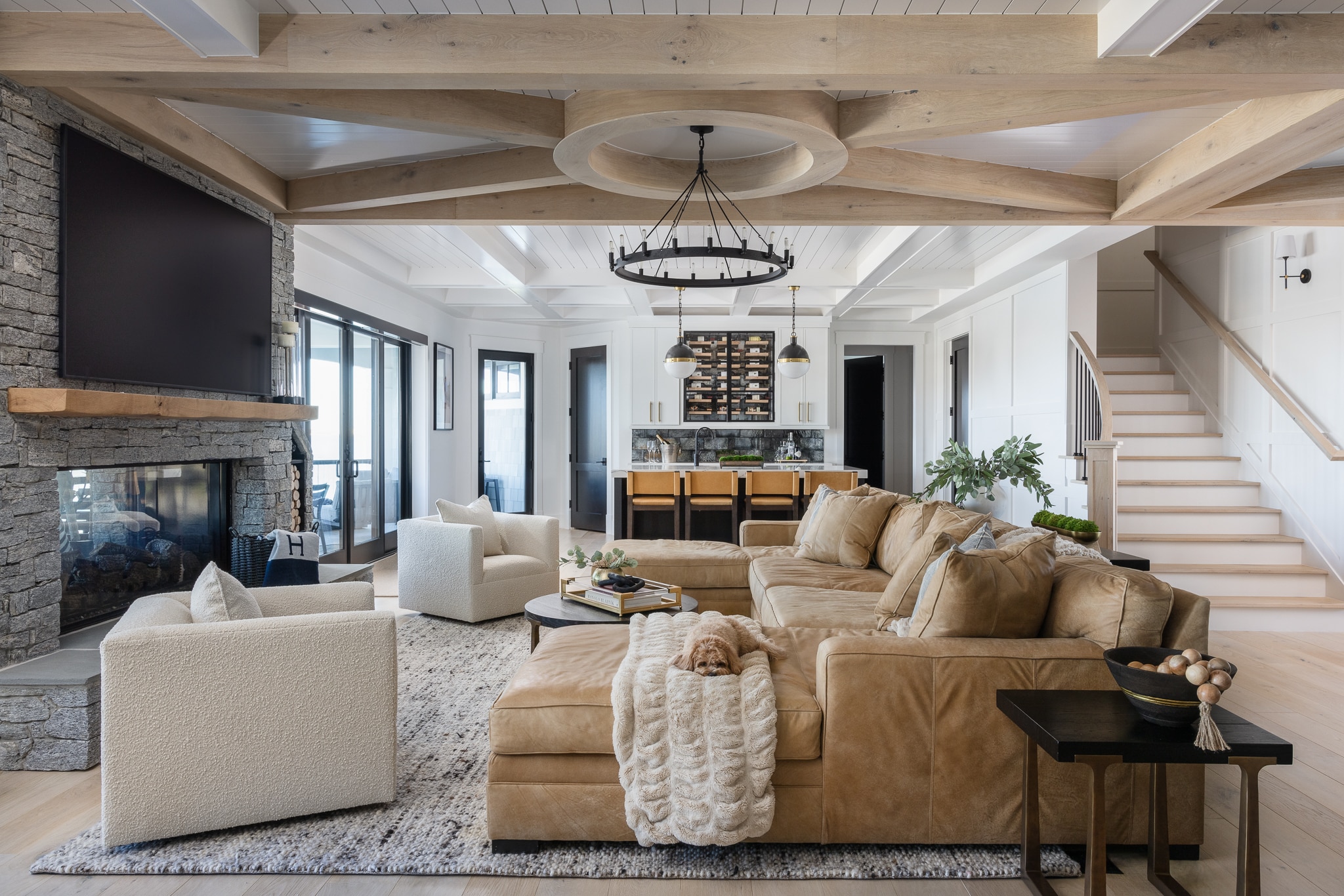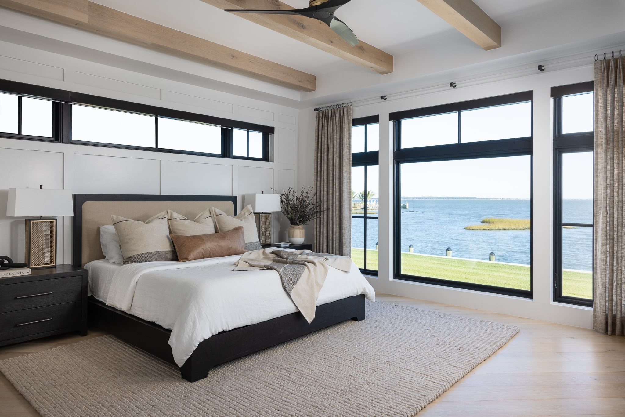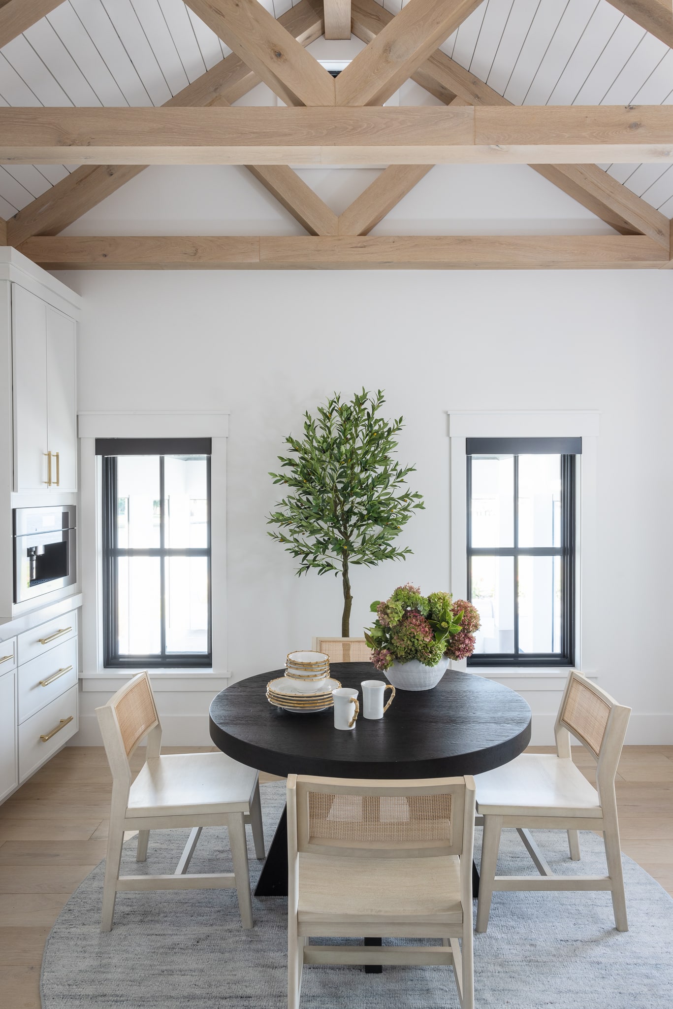 Coastal, comfortable, creative — and purely breathtaking. This stunning design by the talented Gina Drago, built by the water by Consolidated Commercial Services, is a true standout. The interior is grounded by over 7,500 square feet of our ⅝” x 8” Engineered White Oak and accented with custom box beams, circular box beams, and detailed millwork — all finished in our coastal “Hatteras” finish. A perfect selection for a home that captures the essence of shoreline living.