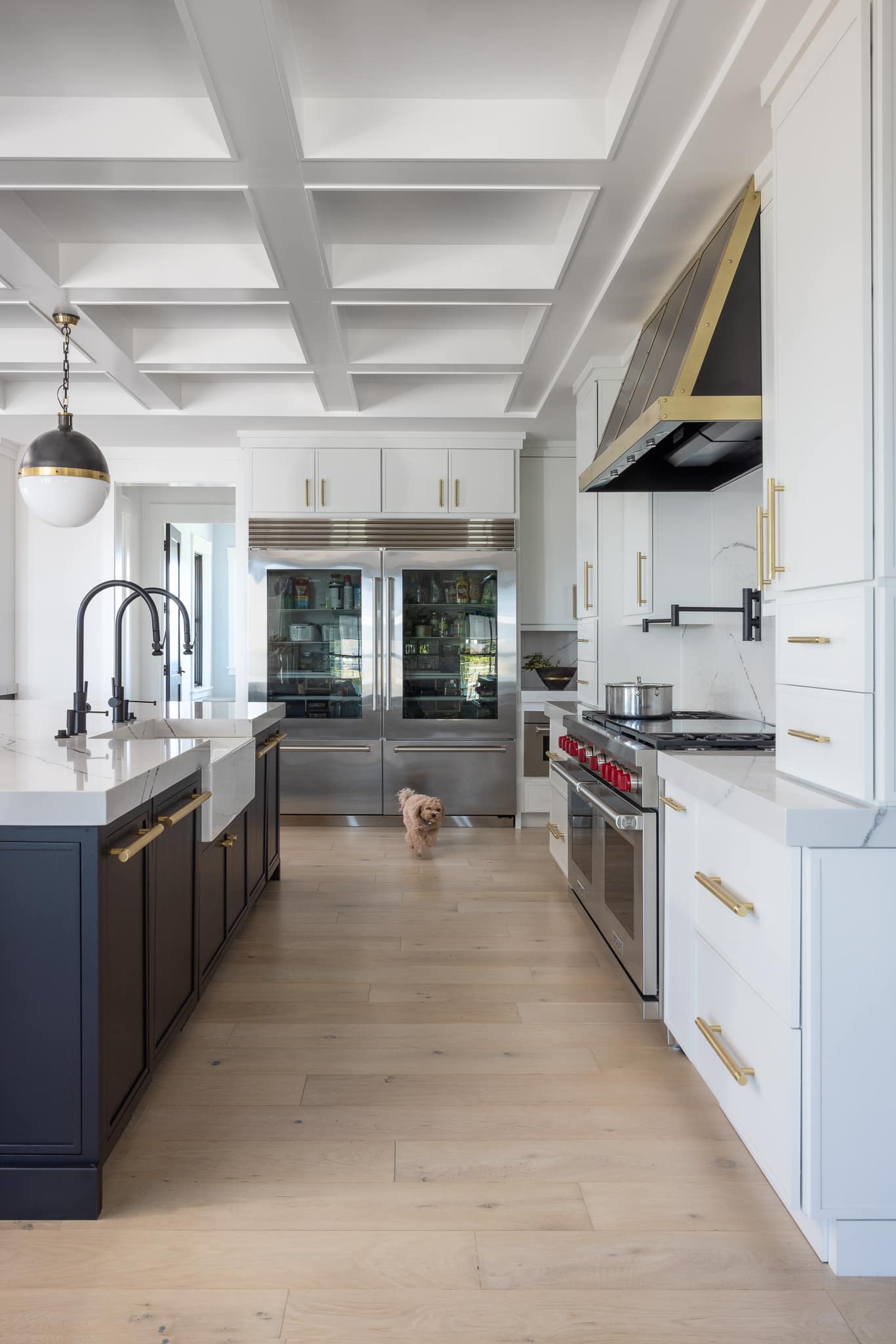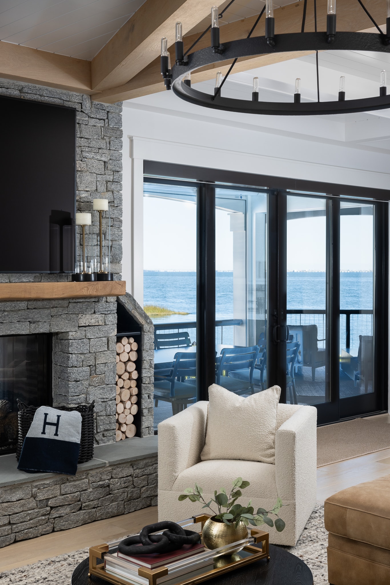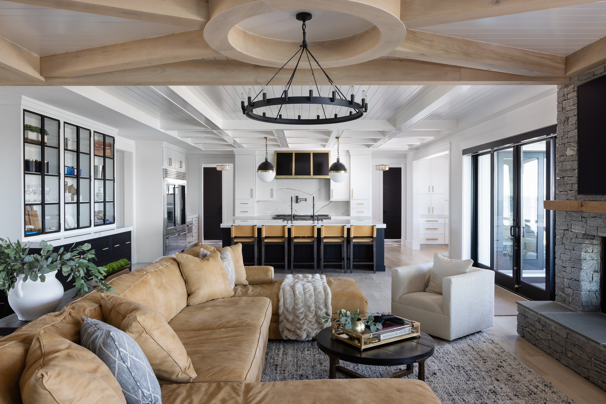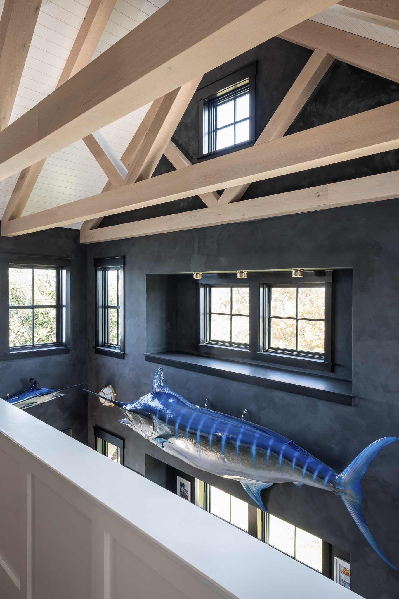 Coastal, comfortable, creative — and purely breathtaking. This stunning design by the talented Gina Drago, built by the water by Consolidated Commercial Services, is a true standout. The interior is grounded by over 7,500 square feet of our ⅝” x 8” Engineered White Oak and accented with custom box beams, circular box beams, and detailed millwork — all finished in our coastal “Hatteras” finish. A perfect selection for a home that captures the essence of shoreline living.