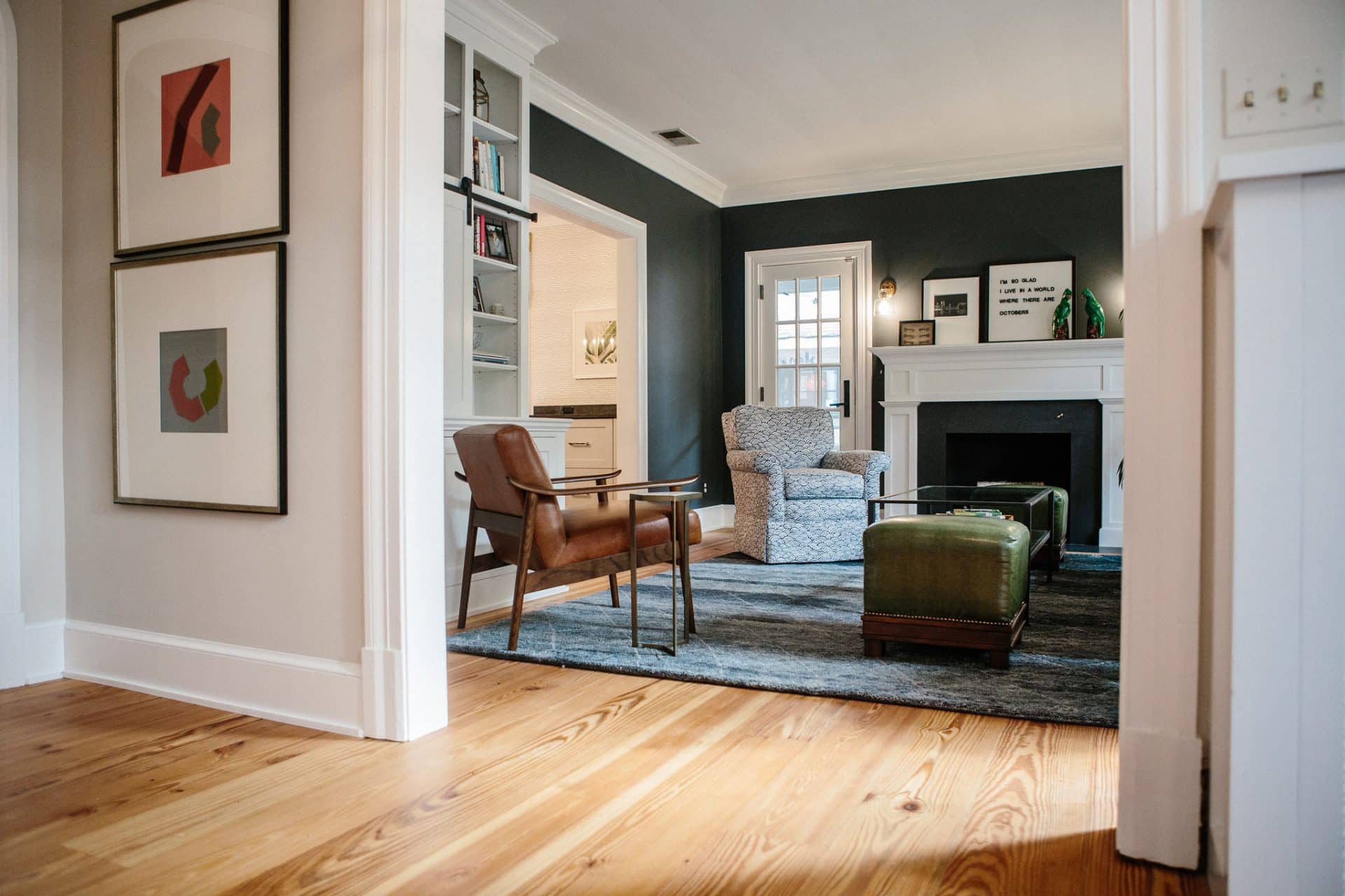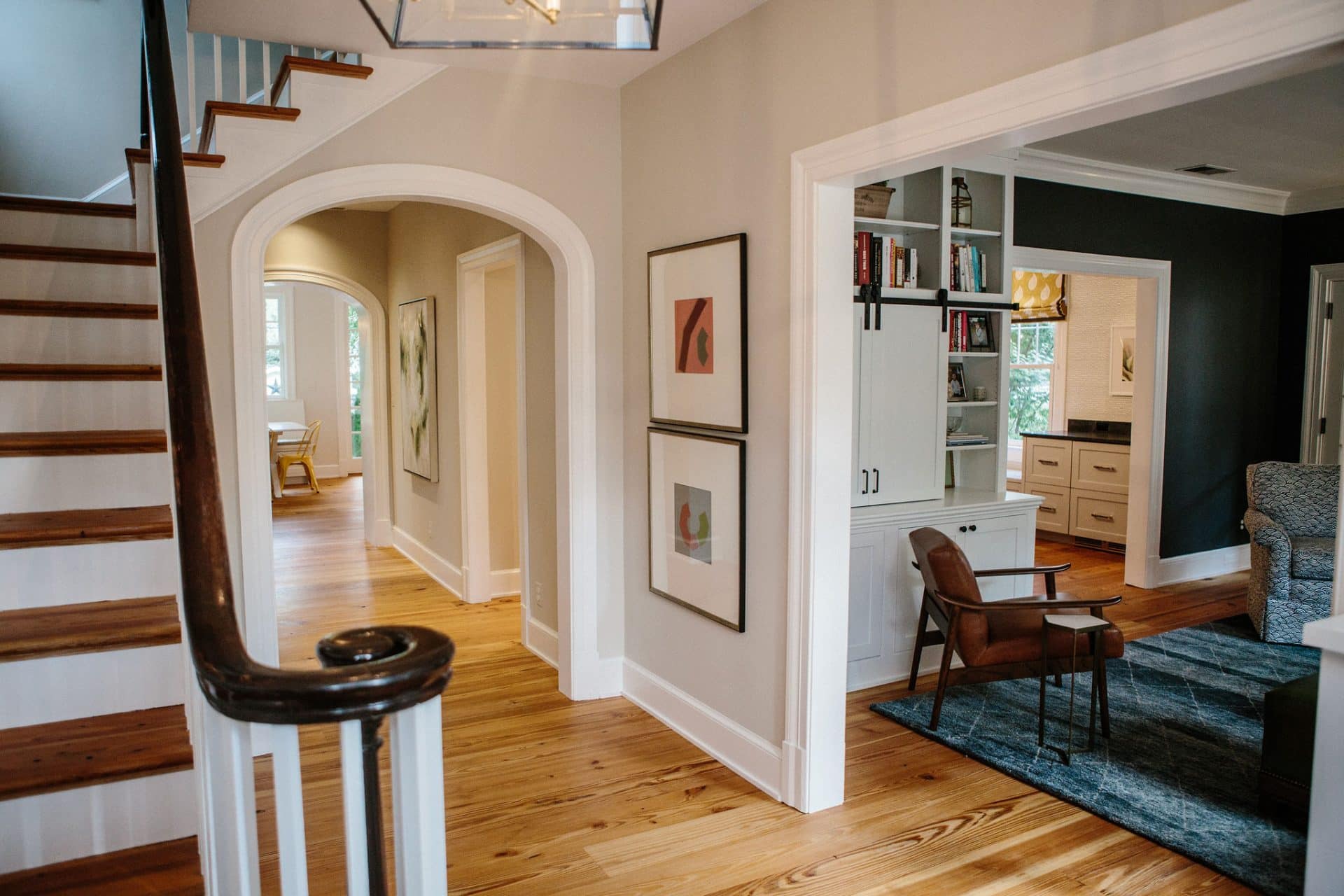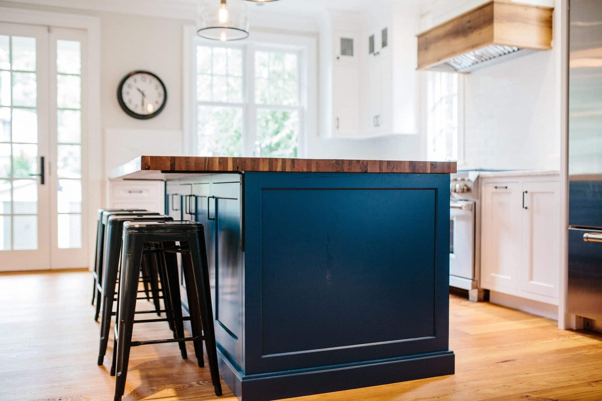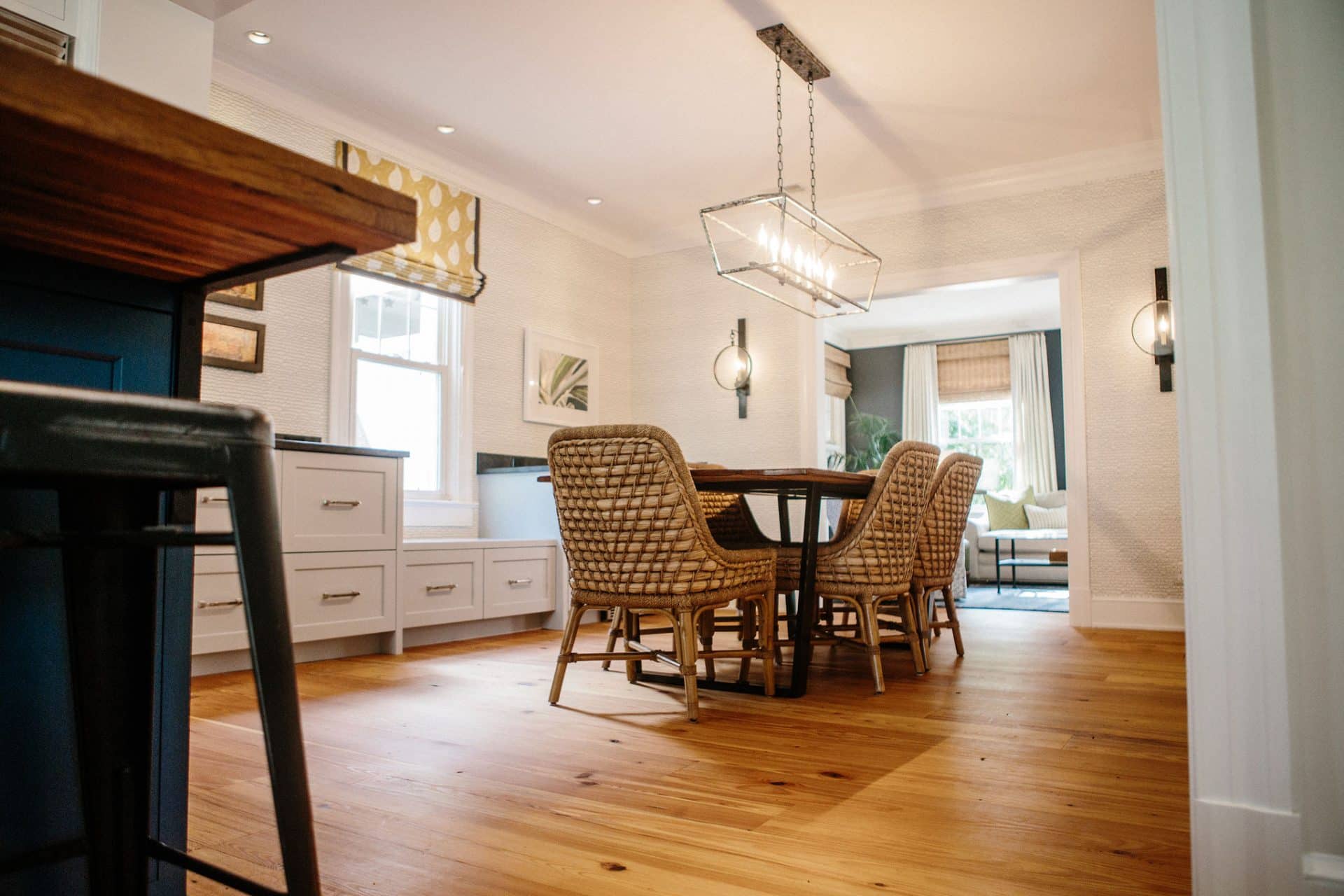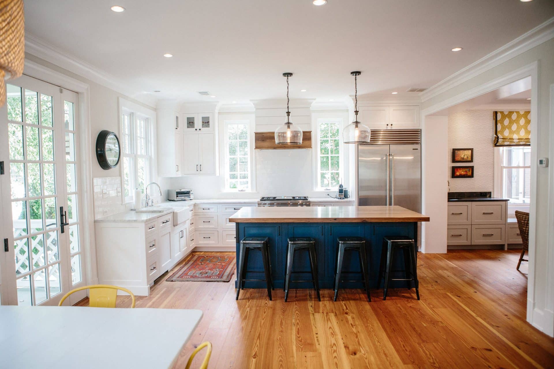 When our friends at Finn Construction Company, Inc. took on the tedious task of renovating a 1930s brick bungalow in Alexandria, VA, they turned to Cochran’s Lumber for period-appropriate flooring. The results are a stunning open concept space that embraces both the home’s history with our wide-plank Heart Pine flooring and its functionality with our gorgeous Antique Oak butcher block kitchen island and countertop.
