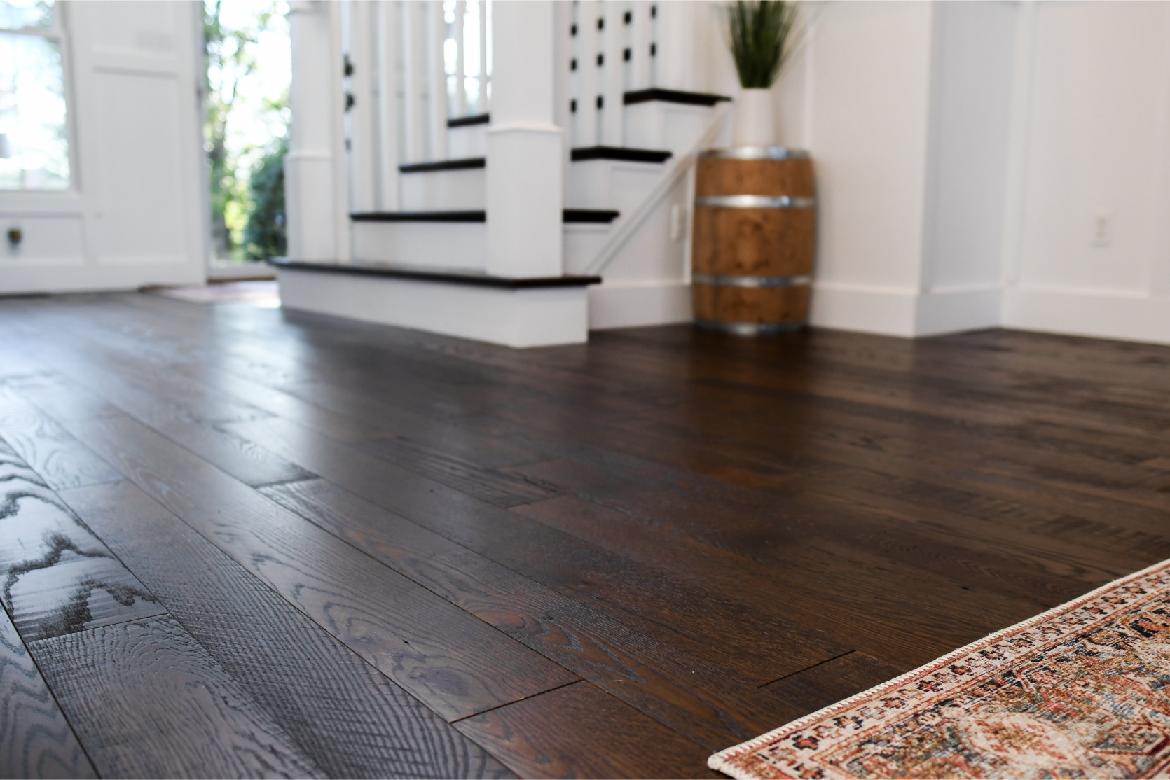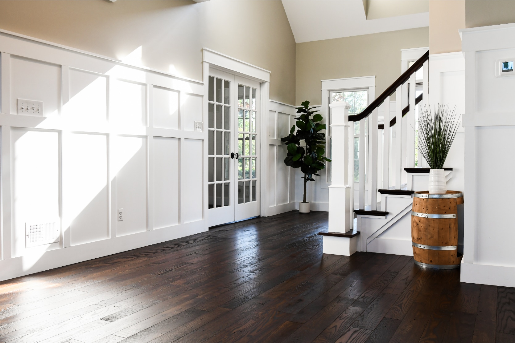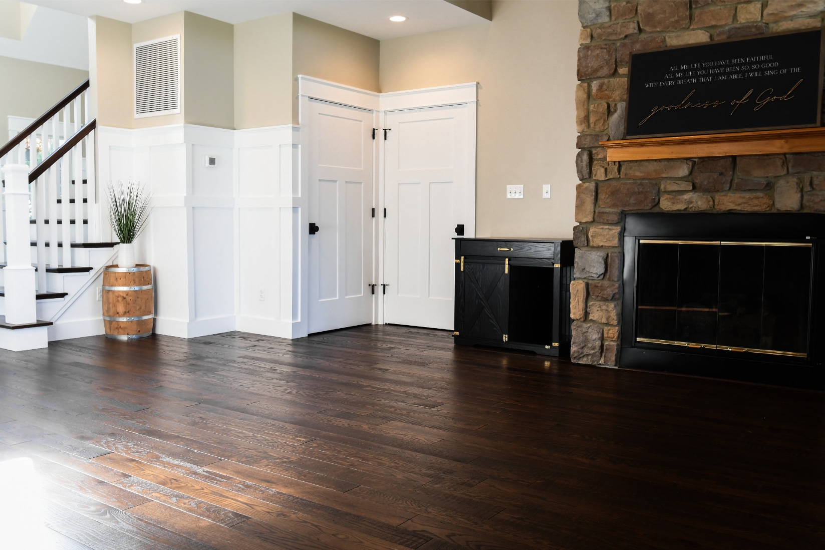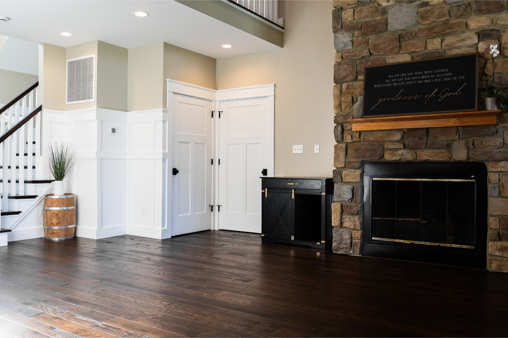 Rooted in tradition and built with purpose, In God We Trust is a home that reflects timeless values through every detail — and the floor is no exception. Our Antique Oak, milled and finished in a custom dark stain, grounds the space with warmth, richness, and reverence. The deep tones create a bold contrast against crisp white walls and trim, while the natural texture of the oak adds a sense of heritage and integrity. Every plank in this Warrenton home tells a story of craftsmanship and conviction — a perfect foundation for a space designed to honor legacy, family, and faith.