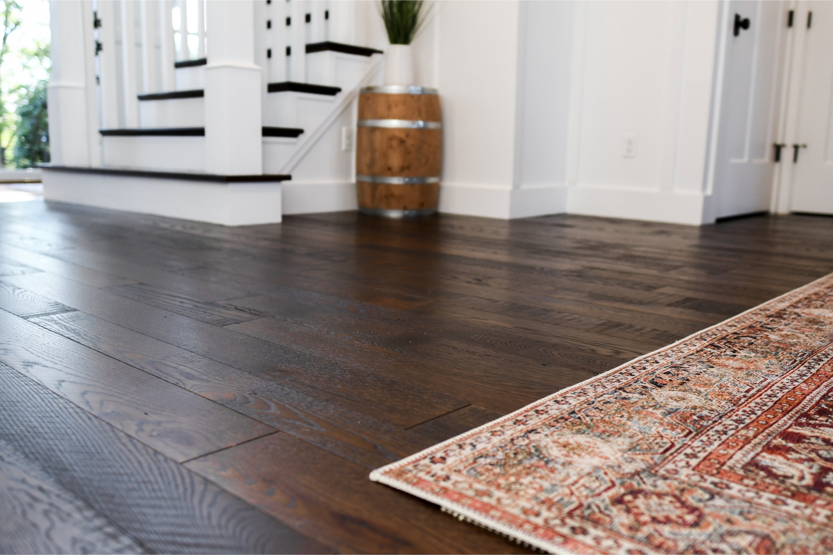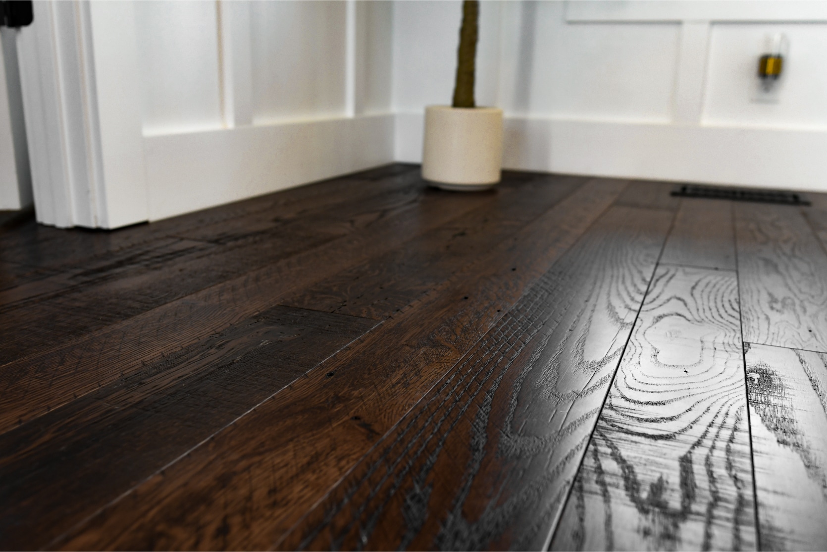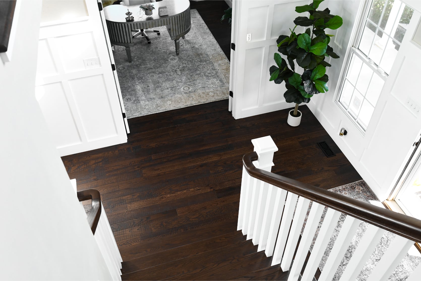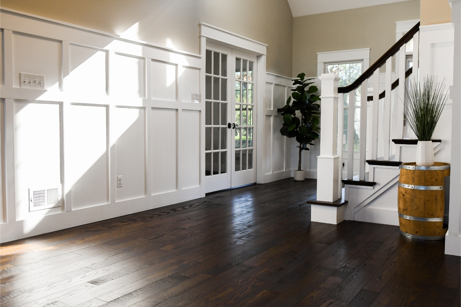 Rooted in tradition and built with purpose, In God We Trust is a home that reflects timeless values through every detail — and the floor is no exception. Our Antique Oak, milled and finished in a custom dark stain, grounds the space with warmth, richness, and reverence. The deep tones create a bold contrast against crisp white walls and trim, while the natural texture of the oak adds a sense of heritage and integrity. Every plank in this Warrenton home tells a story of craftsmanship and conviction — a perfect foundation for a space designed to honor legacy, family, and faith.