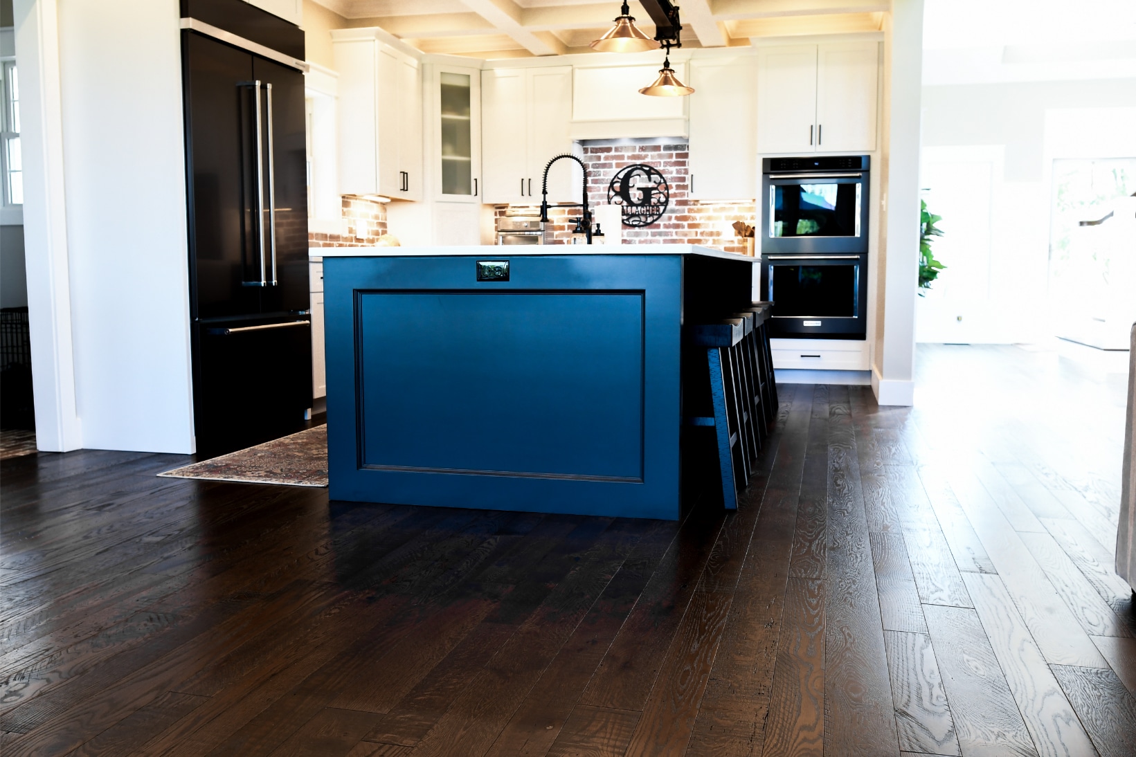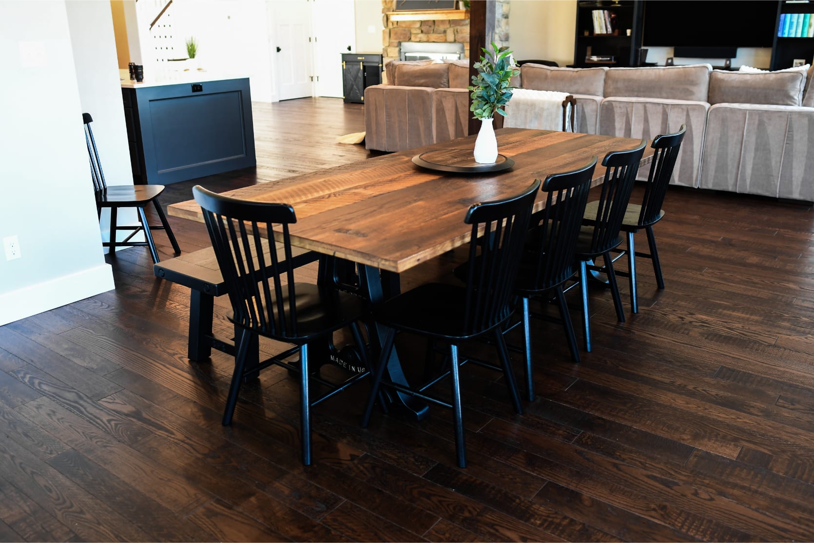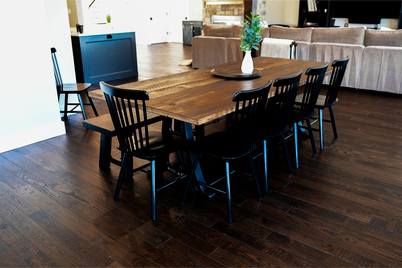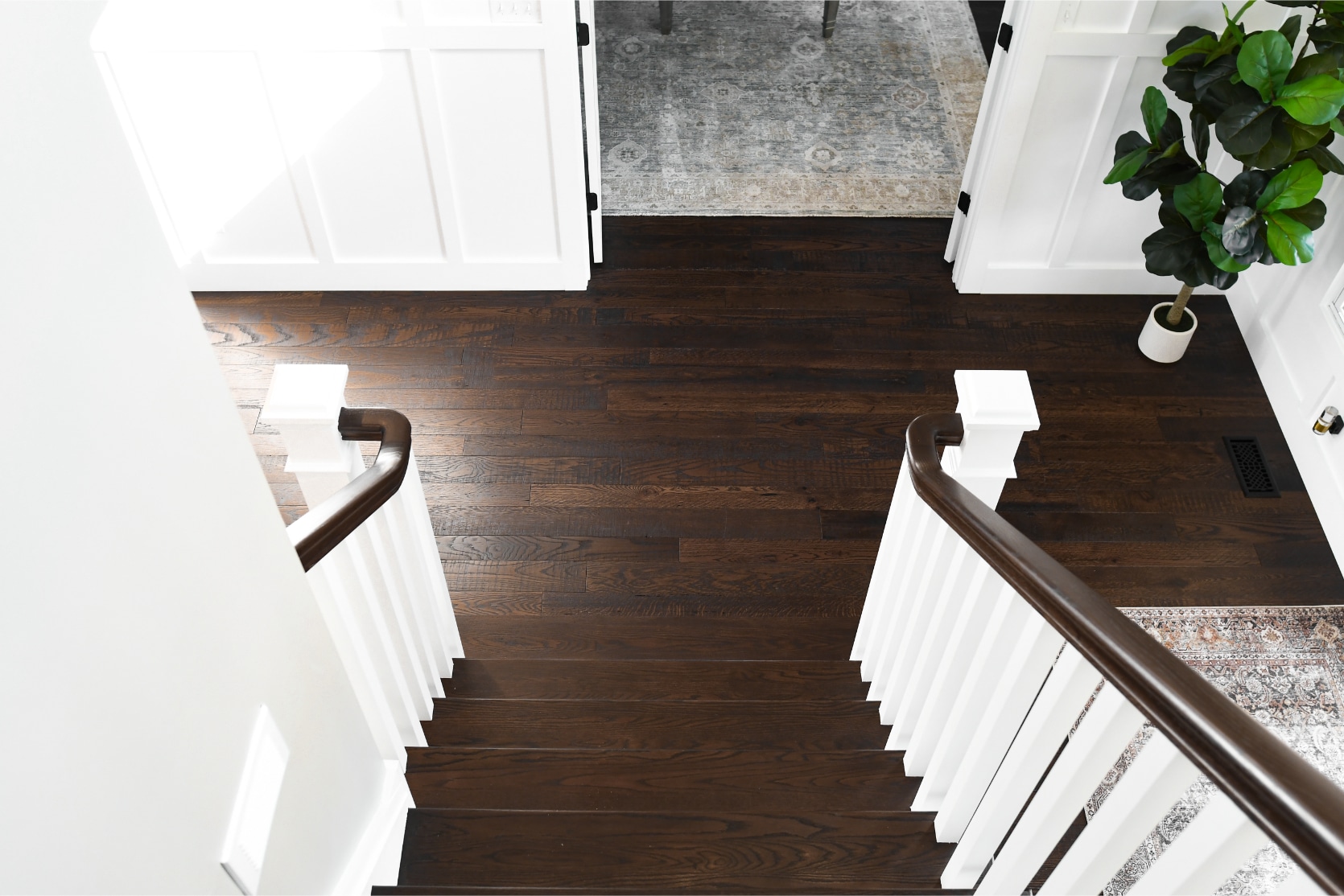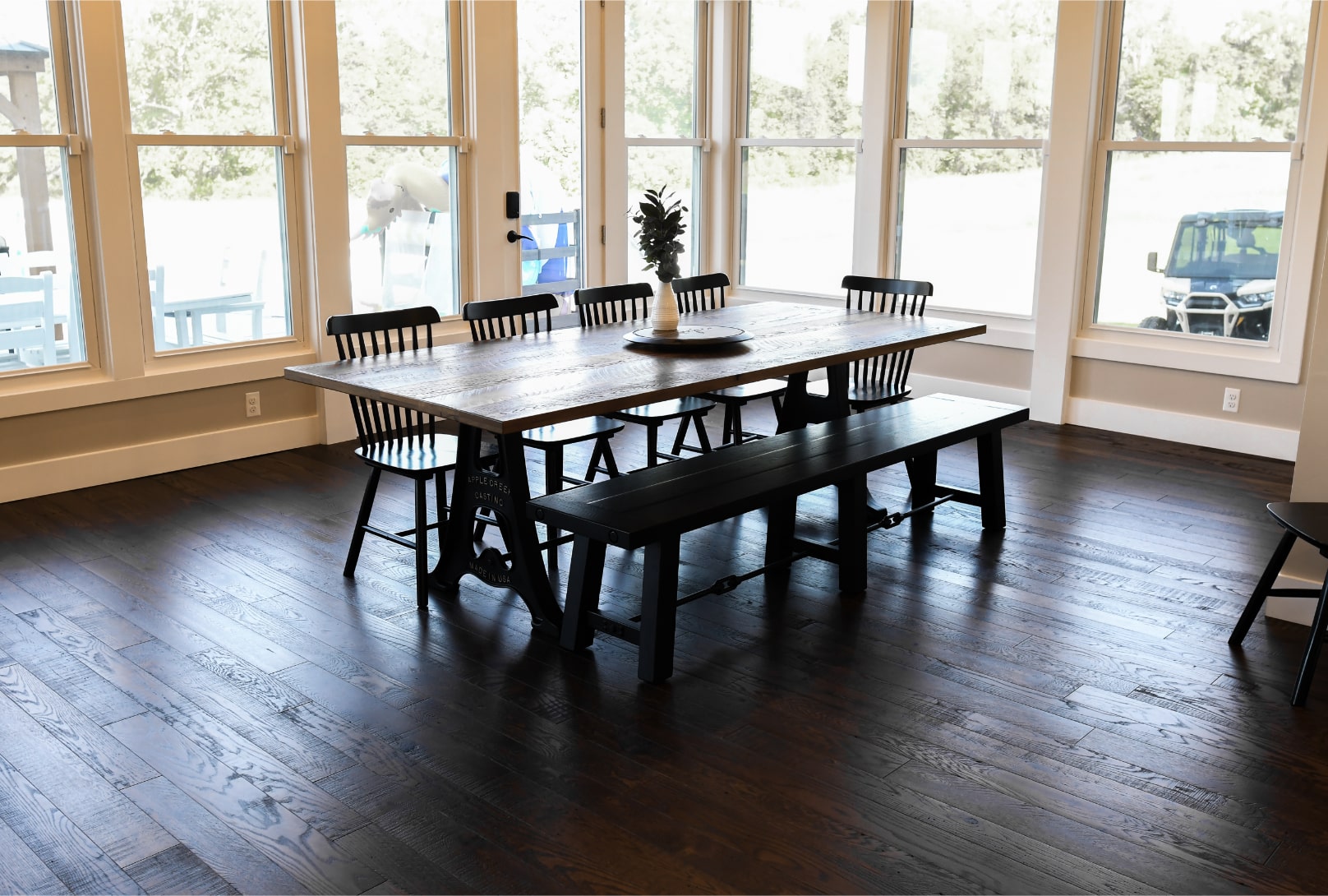 Rooted in tradition and built with purpose, In God We Trust is a home that reflects timeless values through every detail — and the floor is no exception. Our Antique Oak, milled and finished in a custom dark stain, grounds the space with warmth, richness, and reverence. The deep tones create a bold contrast against crisp white walls and trim, while the natural texture of the oak adds a sense of heritage and integrity. Every plank in this Warrenton home tells a story of craftsmanship and conviction — a perfect foundation for a space designed to honor legacy, family, and faith.