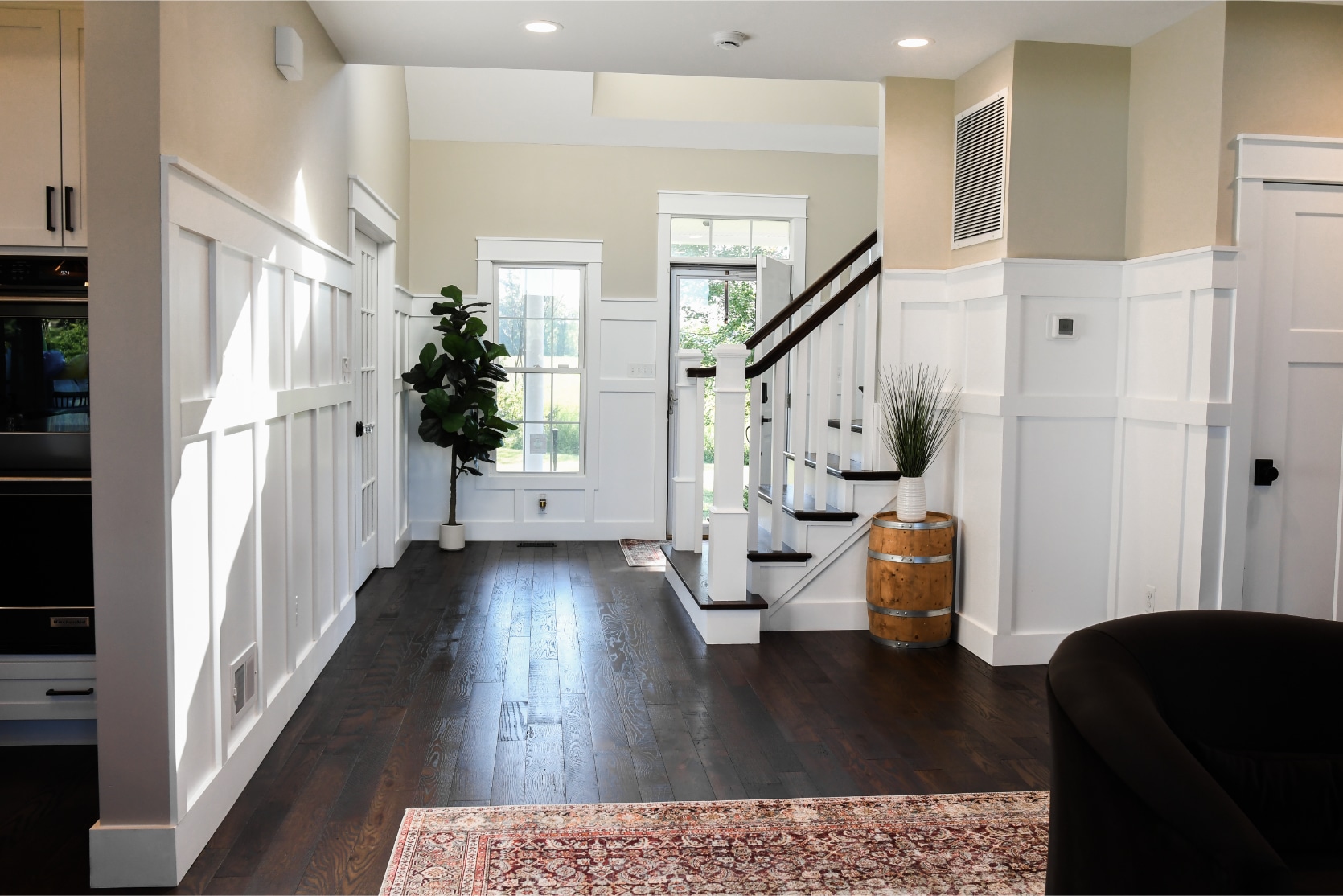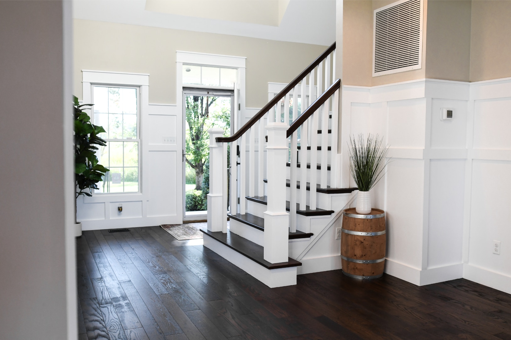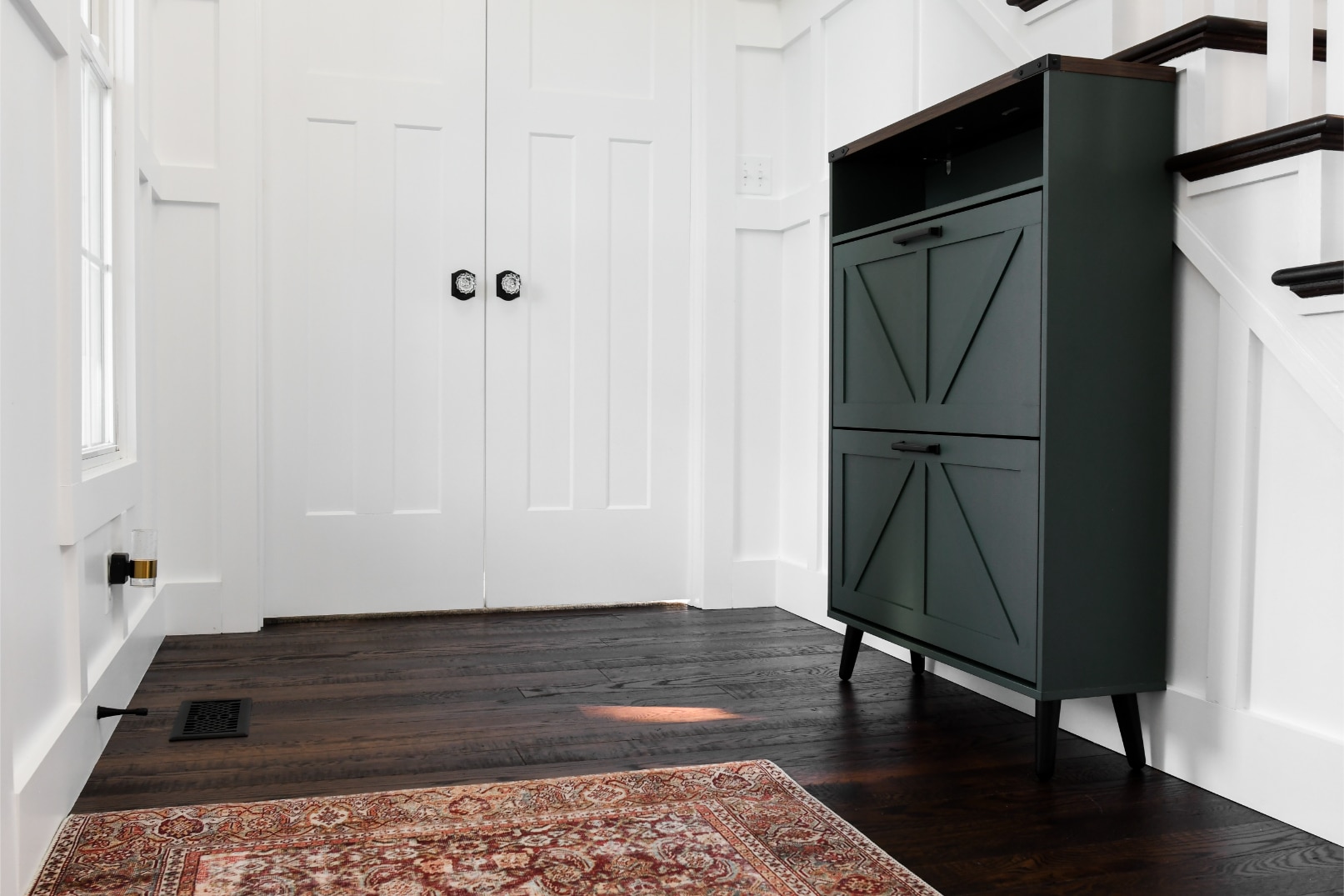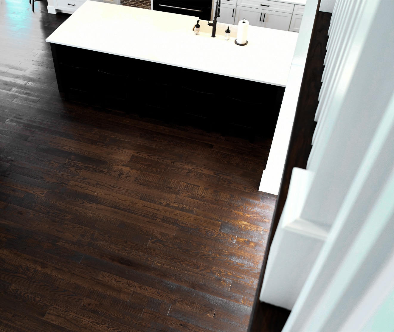 Rooted in tradition and built with purpose, In God We Trust is a home that reflects timeless values through every detail — and the floor is no exception. Our Antique Oak, milled and finished in a custom dark stain, grounds the space with warmth, richness, and reverence. The deep tones create a bold contrast against crisp white walls and trim, while the natural texture of the oak adds a sense of heritage and integrity. Every plank in this Warrenton home tells a story of craftsmanship and conviction — a perfect foundation for a space designed to honor legacy, family, and faith.
