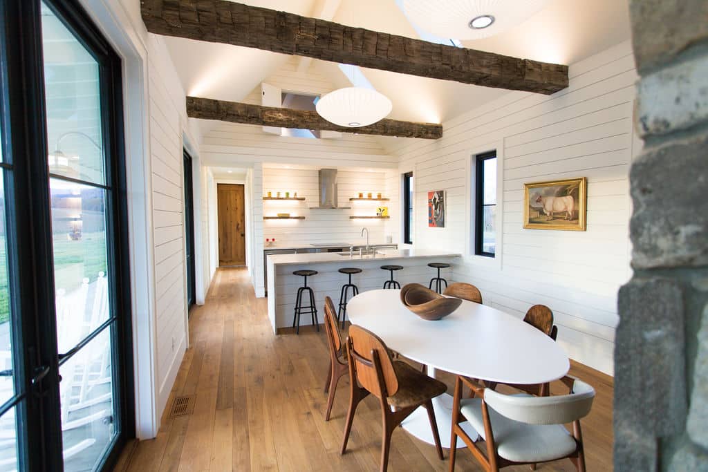 This magnificent property seamlessly blends contemporary and traditional, the indoors and out. The GreenSpur Little Washington Silo property in tranquil Little Washington, Virginia utilizes textural materials, natural light, and the breathtaking surroundings to create a unique and inviting retreat. The client carefully selected Cochran’s Live Sawn White Oak Fumed to engage a finishing process that takes white oak flooring to another level. This intensive and highly custom fuming process makes white oak richer in color while retaining its distinctive, desirable character. Clean lines infused with traditional farmhouse influence create a timeless design that feels relevant now and for years to come.