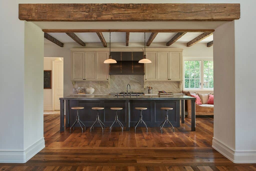 This home, developed by The Banks Development Company, spans over 7,000 square feet and showcases our Antique Oak flooring, installed by Atlas Floors. The flooring is arranged in both a random width pattern and a highly custom Ardeche Parquet design, contributing to the overall aesthetic. Additionally, our Antique Oak timbers are featured throughout the property. Together, these elements foster a classic French Countryside ambiance, providing a timeless space for the homeowners and their family to cherish for years to come.