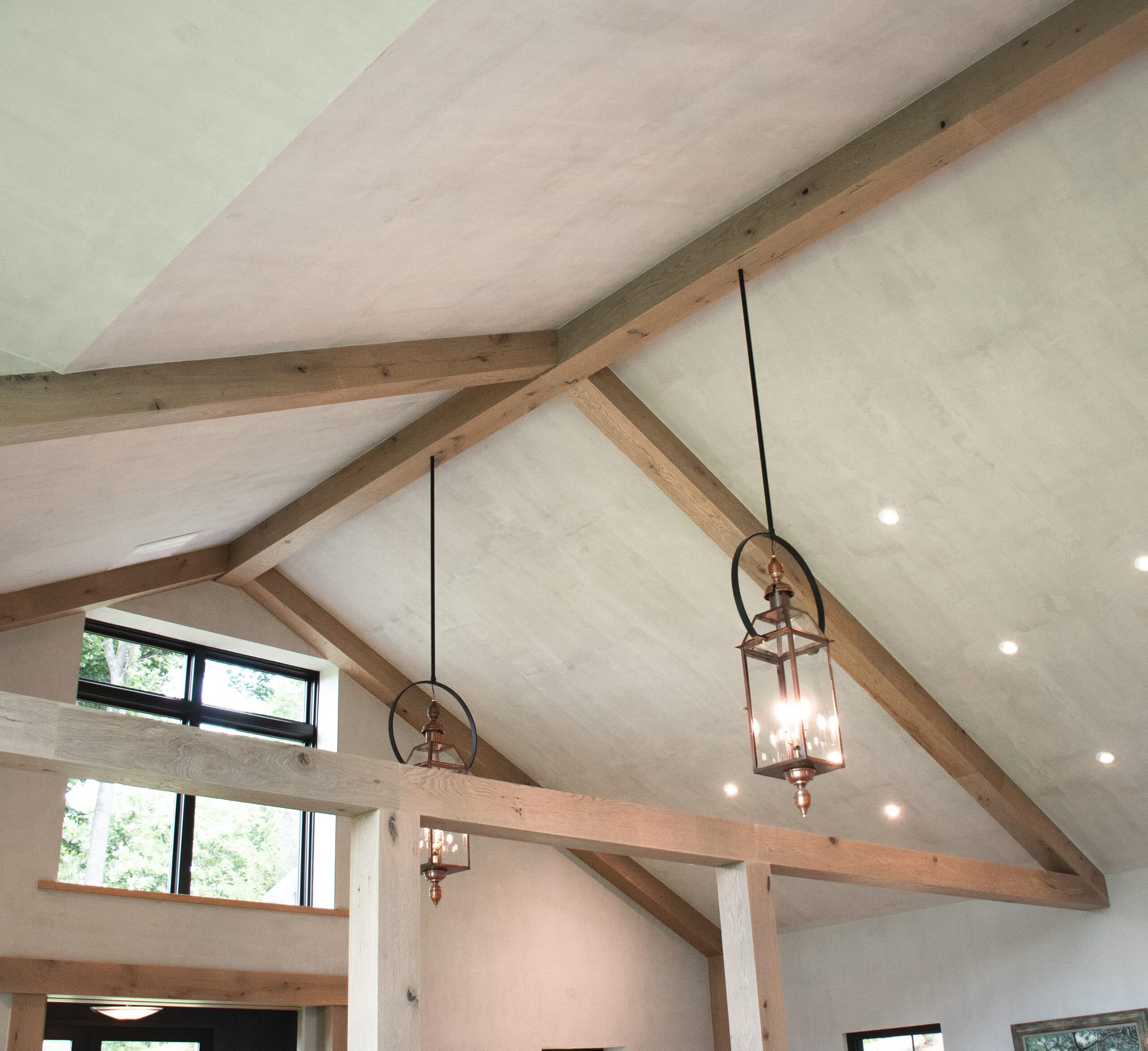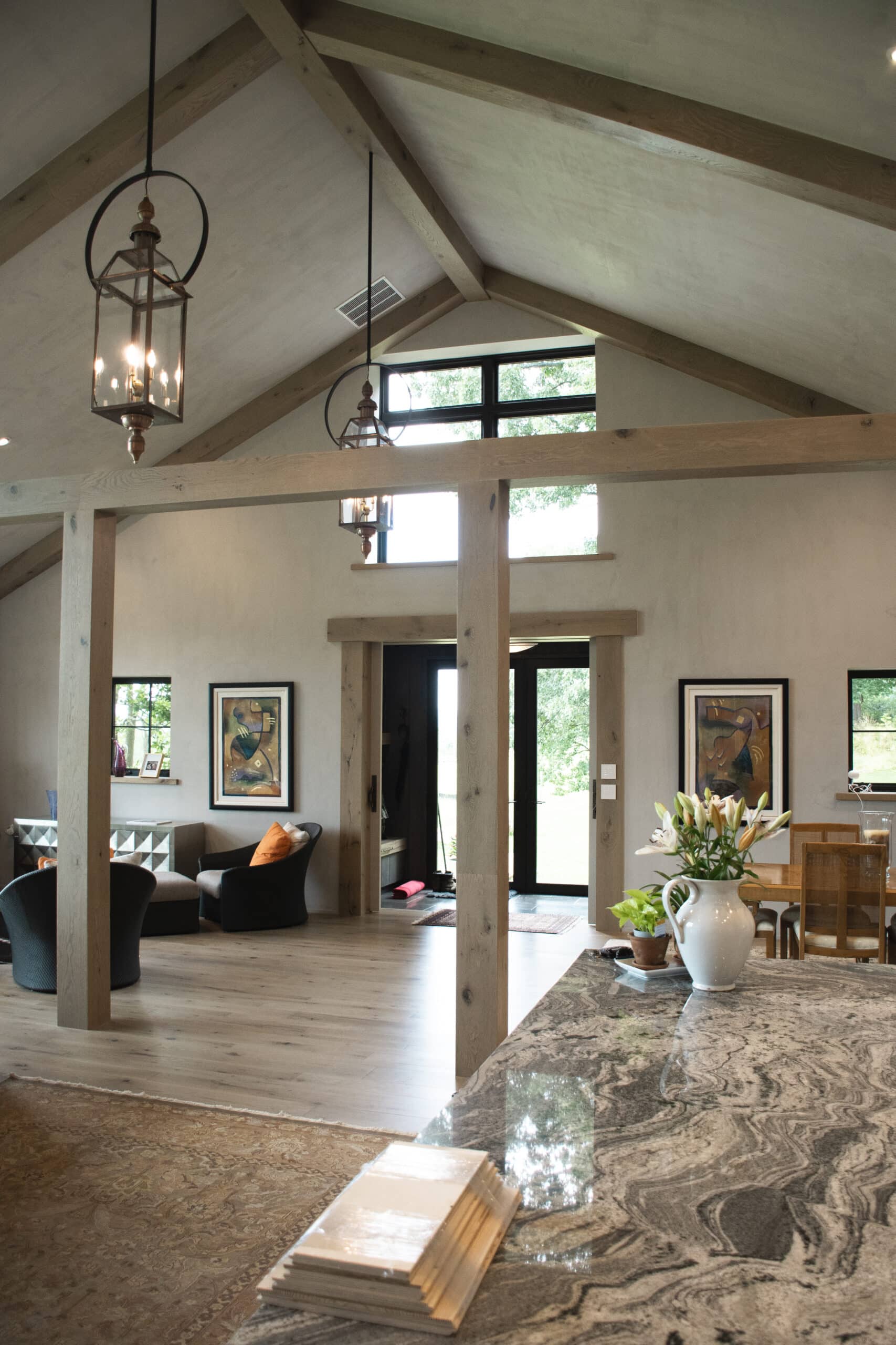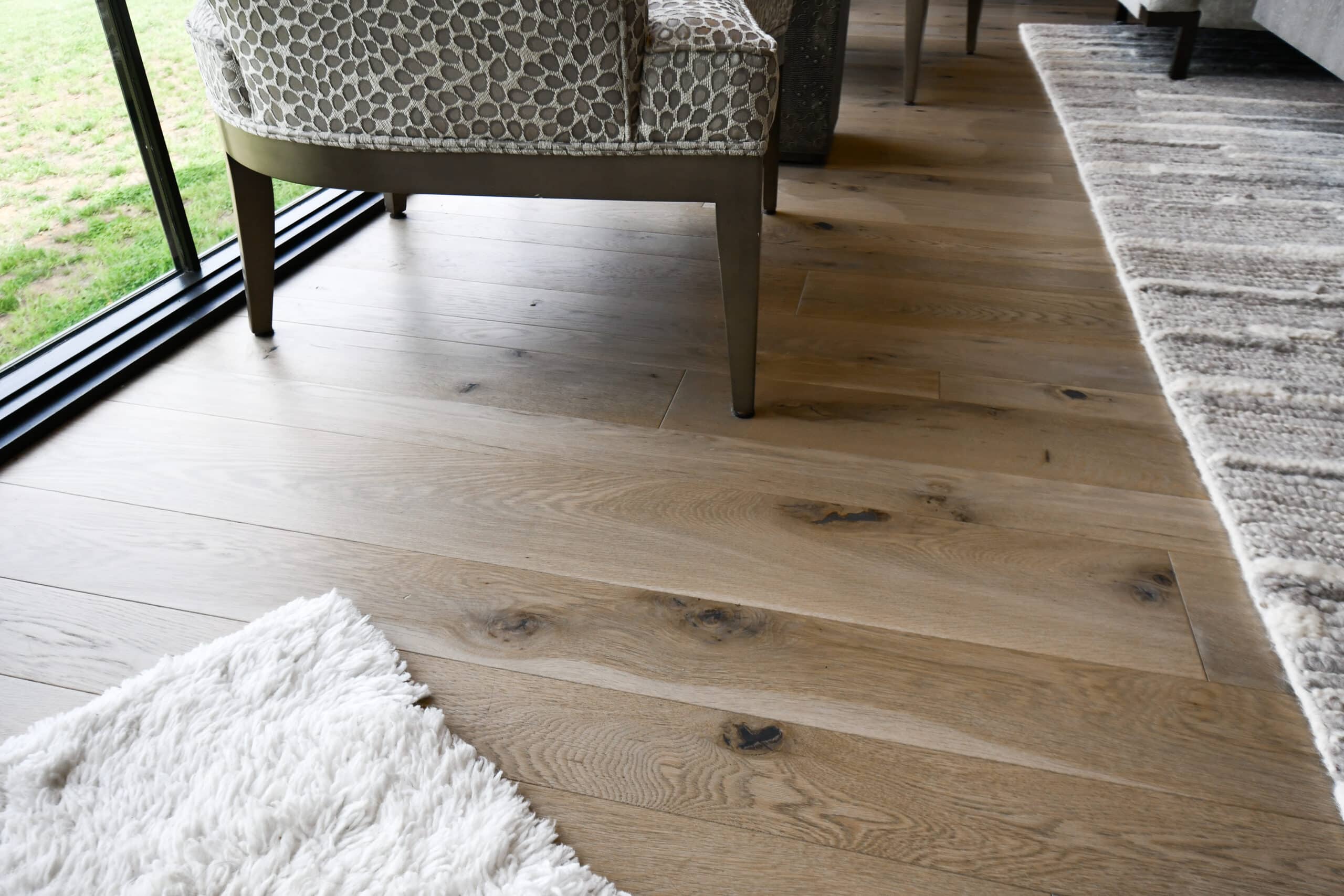 Clean lines, soaring beams, and modern simplicity define The Hazard Barn — a stunning new build in the heart of Fauquier County. This thoughtfully designed home pairs a dramatic timber frame with our mixed-width (3”–8”) White Oak, finished in the soft, inviting tones of our “Balance” finish. The result is a refined contrast that brings warmth and character to the open, modern layout without overpowering the architecture. Whether underfoot or overhead, the woodwork throughout speaks to a vision rooted in harmony, craftsmanship, and timeless design.
