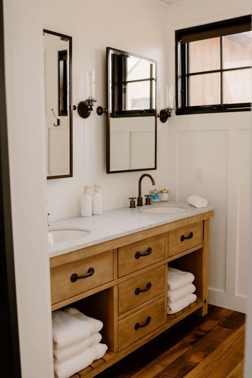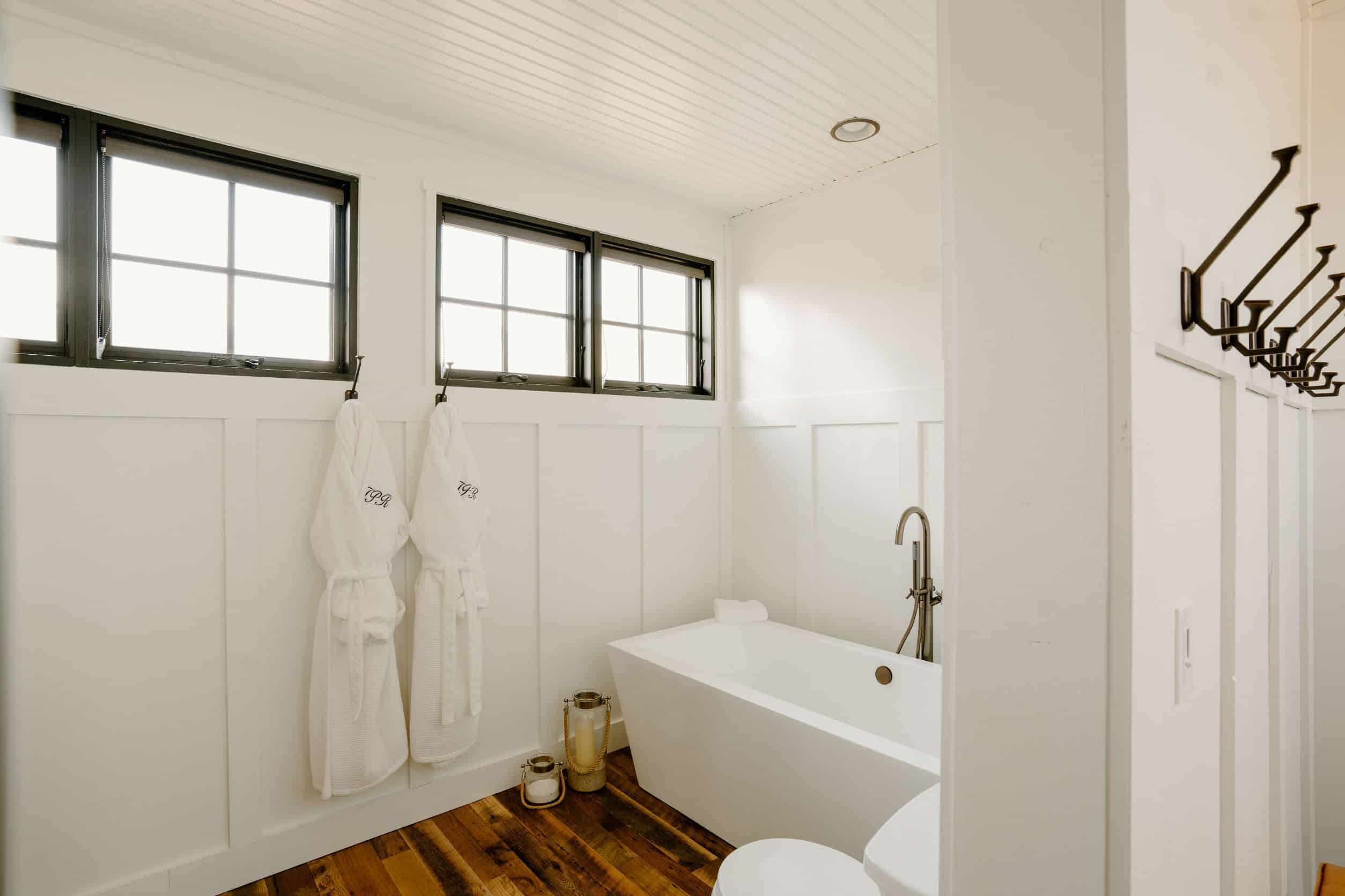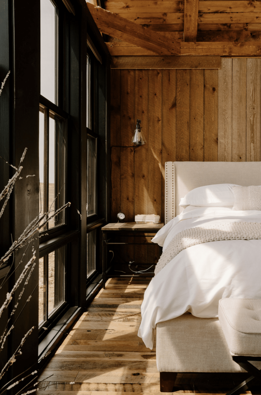 The Gathering Place cabin was to be just that; a welcoming, rustic cabin that offers every modern convenience while allowing guest to gather, unwind, and soak up their surroundings. With an open floor plan, ample light streaming in, and handmade details throughout, the interior truly embodies modern-rustic design. Karen chose Cochran’s Antique Oak Distressed flooring, pre-finished with our clear, matte finish. The flooring perfectly complemented the surroundings, and pre-finishing allowed for easy installation. The character of the wood unifies the bright modern influences and dark accents layered throughout this luxurious retreat. Karen’s thoughtful selections in the space were well worth the effort: “It’s incredibly gorgeous flooring!”.