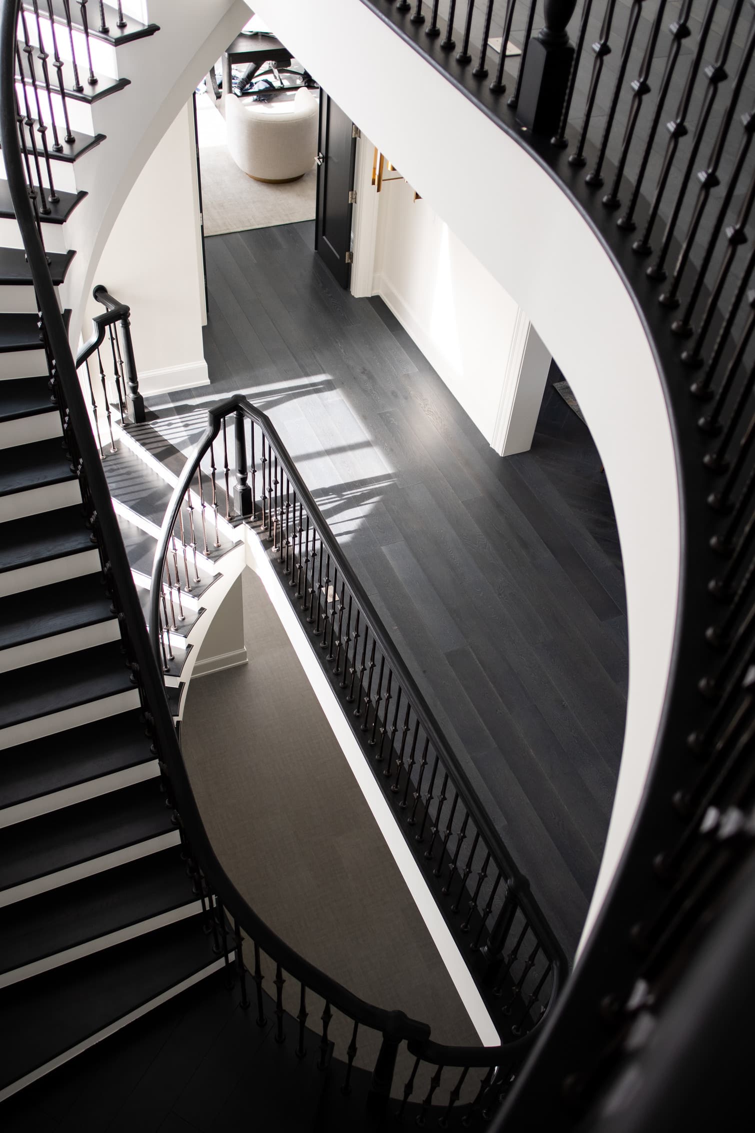 A breathtaking design and build brought to life by Joy Custom Design Build — the perfect project to showcase our custom “Yampa” finish on ¾” x 7” White Oak. Inspired by the deep, mysterious waters once navigated by Chester W. Chapin’s yacht, Yampa blends the rich, dark depths of the ocean with the cool sophistication of steel for a unique, modern aesthetic. Whether complementing dark accents or creating bold contrast in a bright space, see how this elegant finish adds timeless character to this interior.