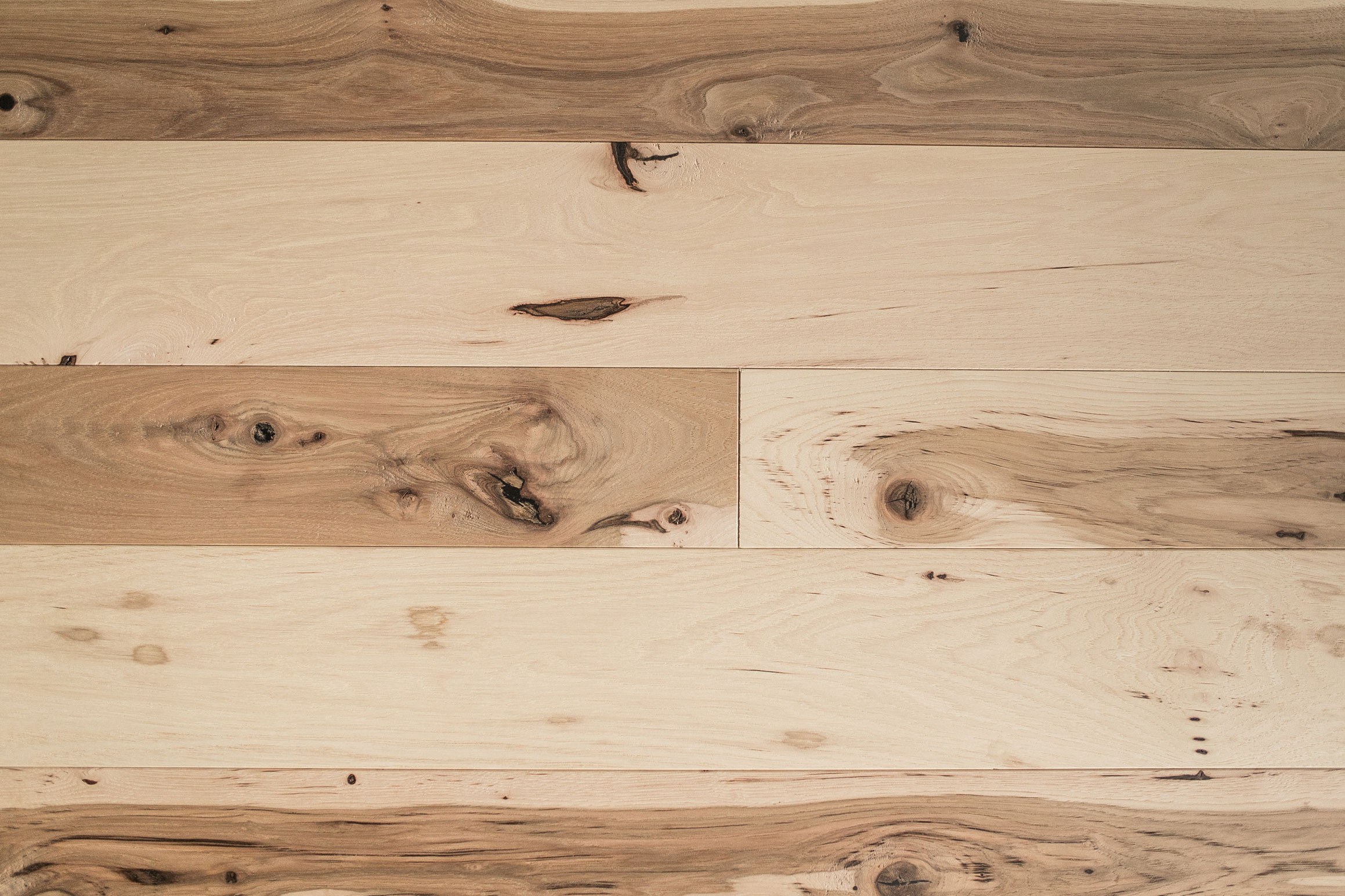 Hickory is known for its strength and durability, and it can withstand high-traffic areas while adding a touch of natural beauty to your space. While much harder than white oak and typically having more character (multi-colored grain patterns, tones throughout the wood, and more knots), it does bear a passing resemblance to the look of white oak at times. The color can read more white and even take to finish colors similarly, if not identically, to white oak. Thus, hickory makes a fair option if you’re looking for something similar to white oak but with a less predictable range of character and color tones.